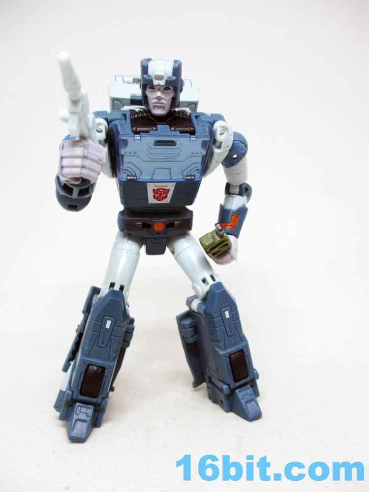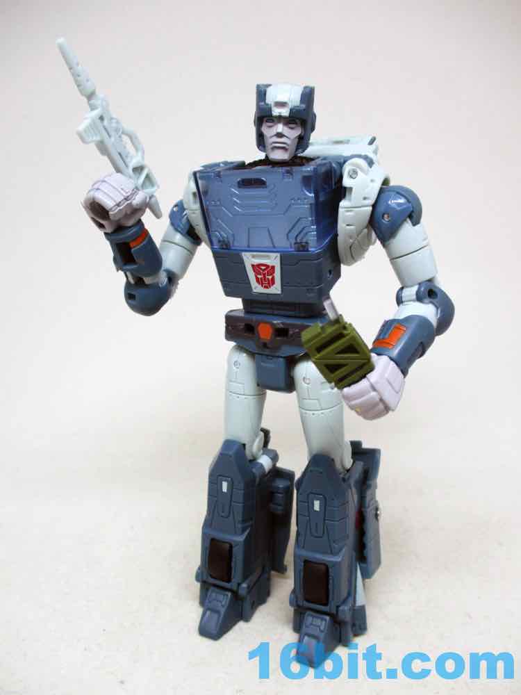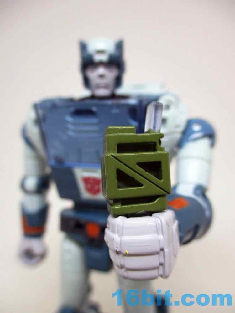 His accessories are clever. The Energon Goodie pack looks great, and while it doesn't glow (yet) I assume someone is working on that. Even if you don't like Kup it may be arguably that this is something to sweeten the deal to make you want to buy it. His rifle matches the toy design too, it's just relatively small. Both weapons can plug in to the vehicle mode nicely, but there's no robot mode storage I saw (or noticed in the manual) for this one. He has a great range of motion for his accessories - the elbow cut is a deep one, so he can take a bite off his Energon Goodie pack. Little details like this are big improvements, normally you needed a double-elbow joint for that range of motion and here, it just works.
