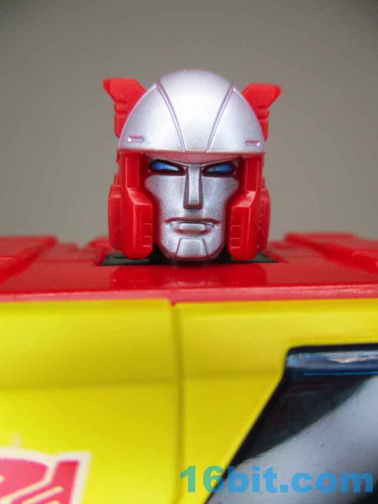 While not quite "Studio Series" levels of cartoon accurate, Blaster is close. The head clearly borrows from the cartoon thanks to the nose being sculpted without the band over the nose, and the head design seems to be from the cartoon too. The shoulders borrow from some of the cartoons - the design wasn't consistent from episode to episode - with speakers in the shins and the boombox handle in the legs just like the original toy. Actually, he's a lot like a smaller version of the original toy with more articulation and a stunning amount of twists and turns to get him from mode to mode. He has a good center of gravity so you can do lots of action poses without him falling over, the joints are nice and tight, and the colors are just like the cartoon and toy - but more like the cartoon, since there are no superfluous stickers or anything. You'll also notice the figure is generally free of gaps other than the ones in the forearms, between the wrist and elbows. Sadly the figure has no swivel wrist joints, but given how generally sturdy and fun the figure is to fuss with I'm not complaining.