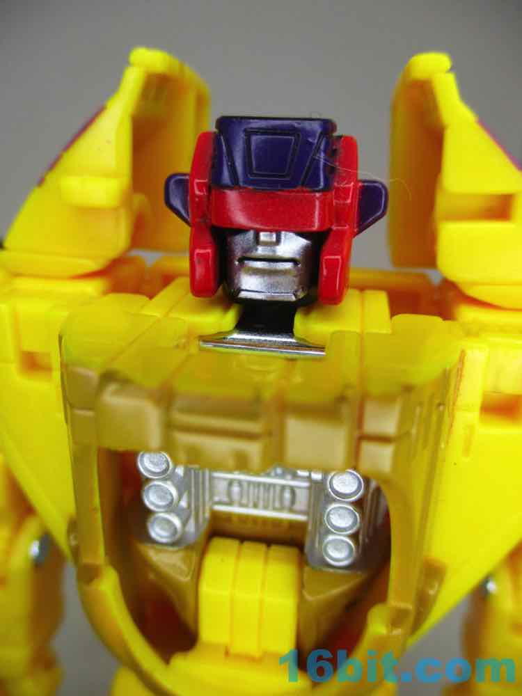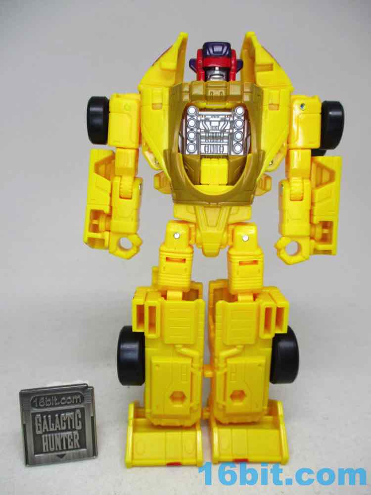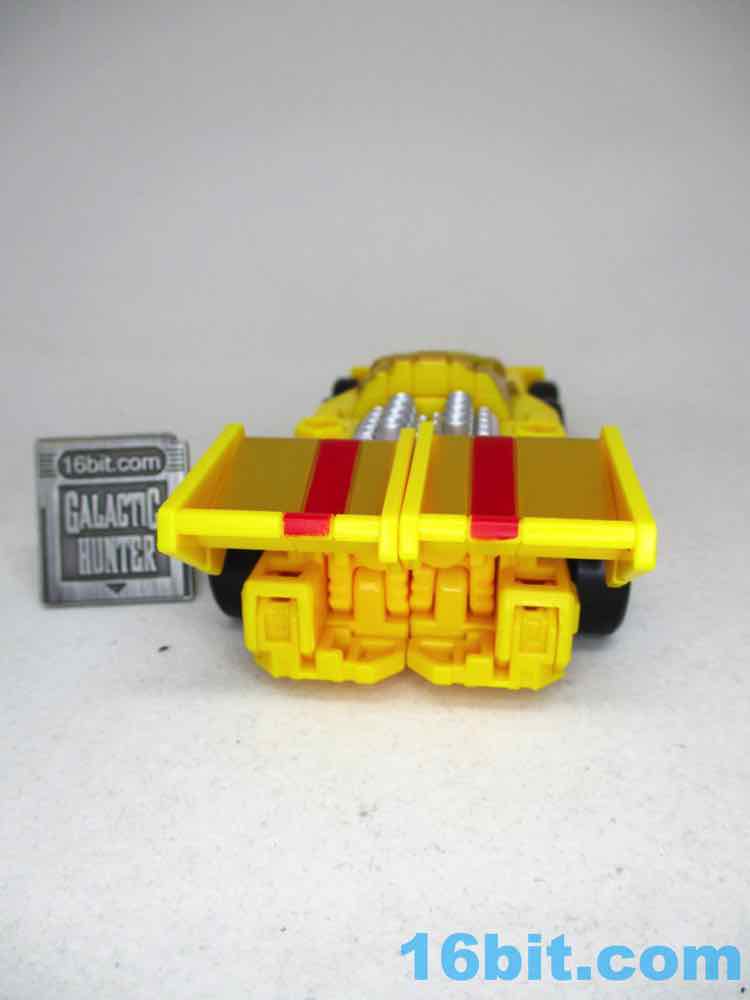 This figure is closer to the cartoon models than the original toy, and the 2014 Dragstrip [FOTD #1,171] was a nifty reimagining of the character. Many of the Dragstrip toys are surprisingly different - one is a really good Mirage repaint, another was an Arcee repaint. This one is a completely new mold with 22 points of articulation. I was surprised to see no wrist joints on this one, but you get plenty of ankle movement and a preposterous amount of unbroken yellow.