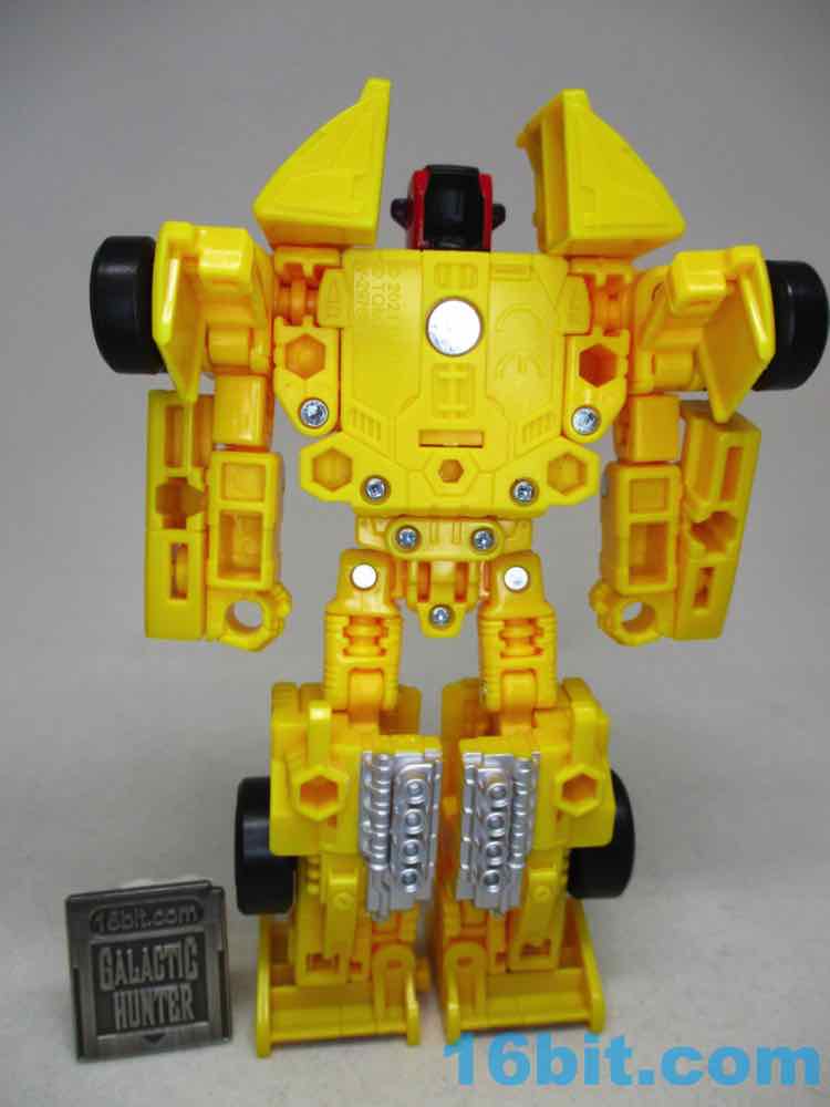 Despite being a combiner, the robot mode has articulation on par with just about any normal figure with a great range of motion. Since the combiner limb is just a car split in two, this makes sense - there's no reason it has to make a lot of concessions to have that extra functionality, so you get a nice robot. There's just not much to him, with some stripes on the elbow and mustard around the silver engine on his chest. The head is modeled after the cartoon model - not the toy - which should make it a compelling release to track downs for fans of the Sunbow designs.