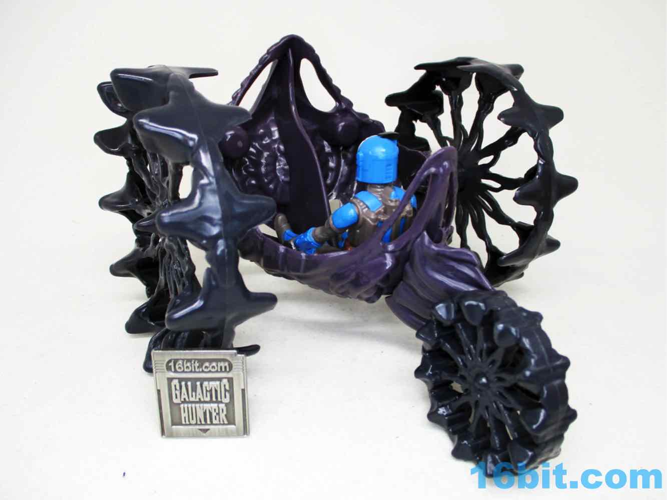 This toy is more inspiring than it is great - clearly cheap vehicles are possible and nobody is bothering to give them to us anymore. The two wheels look like a backbone grown into rolling spokes of death, with a smaller one on the back and a big weird biological nightmare as your seating area. Some red paint was used to show red lasers and an Earth core melter, but other than that, it's a pretty sparse toy. The interior is completely hollowed out and there is no sculpted detail. Were this not effectively a toy you could buy from change you get in the parking lot, it would be upsetting. I don't own any Final Faction figures so I plopped in some Kenner (and Kenner-style) figures who mostly fit like a charm.