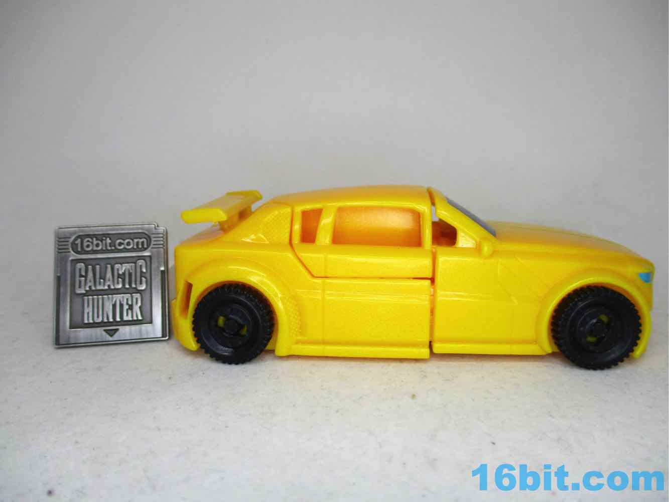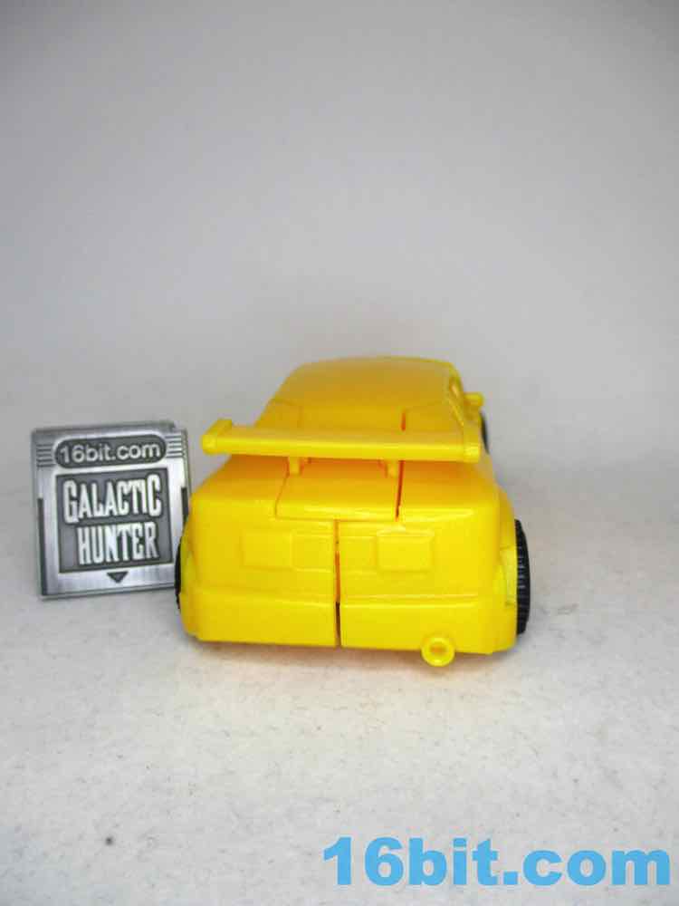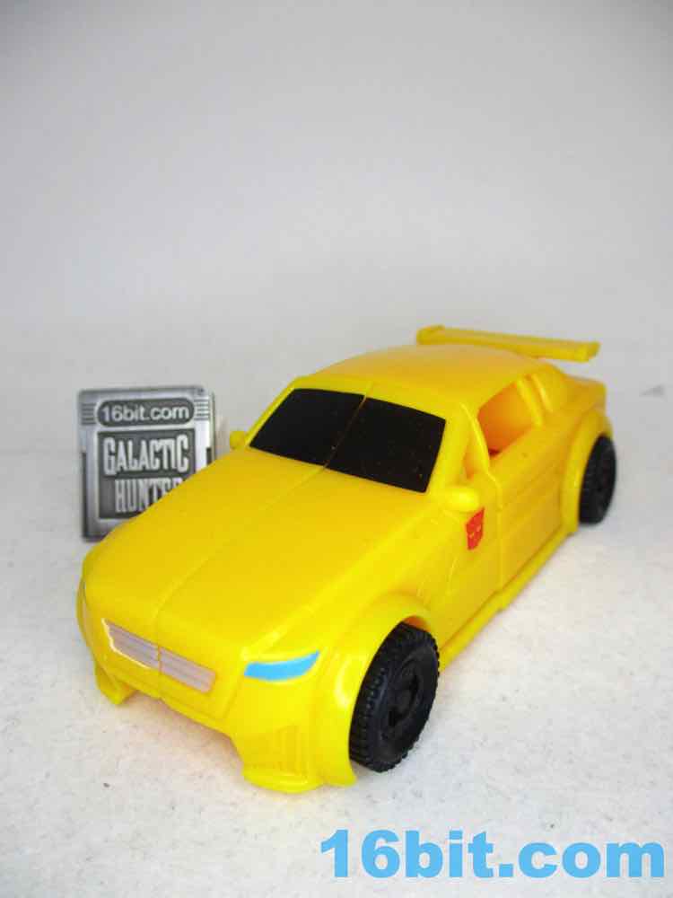 The car is mostly unpainted. It's all yellow except a black windshield , blue headlights, a tiny silver grille, and black wheels. It looks like a Happy Meal toy, but slightly better and bigger with better proportions. It's almost identical to the Alpha class car, but smaller. The wheels roll adequately, but it's just not an impressive toy. Hasbro's other toys in this assortment are a bit more impressive in their vehicle modes.