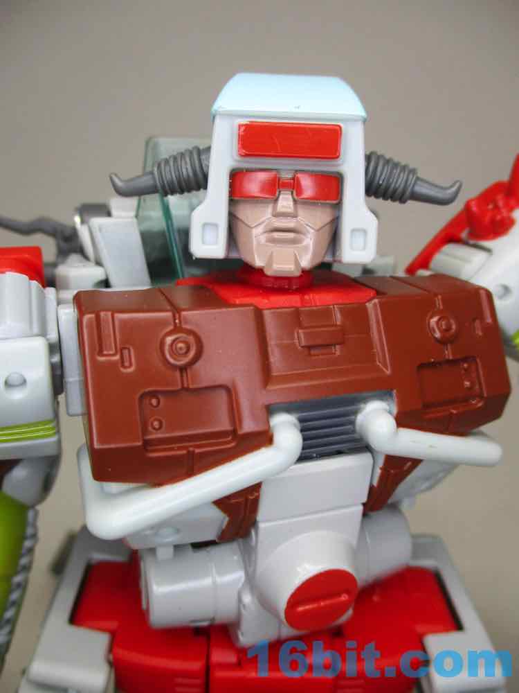 In short, he's good. The figure is basically the same as the very good Wreck-Gar toy, but with a new head, new wrist cannons, a new chest, and a few other retooled and redecorated elements. The robot does a good job of giving you something much closer to the original character model for the cartoon, but they take some liberties in the name of getting this toy made within budget. You get your new forearms and shoulder spikes, but the legs are the same old legs. Does this matter? It leaves the door open to do an even more accurate remold down the road, but given how rarely we get Junkheap toys that's pretty unlikely. Instead, you can just be happy we got the weird handlebar head with goggles and a brand new face rather than "Wreck-Gar but with different mustache" like last time. The primer gray elements don't look like much, but they're accurate to an idealized version of this background character.