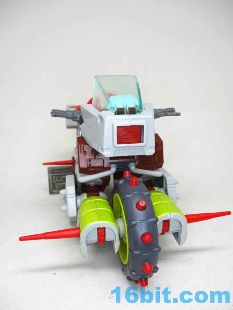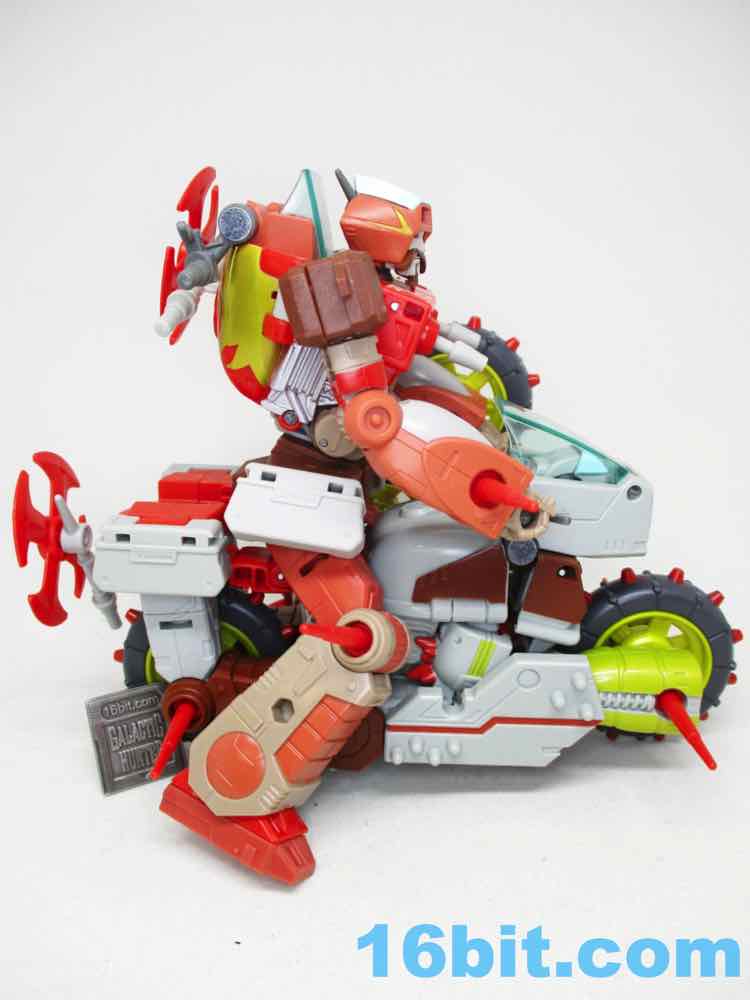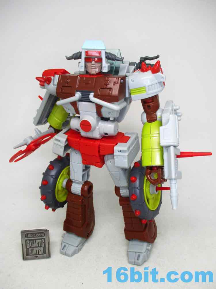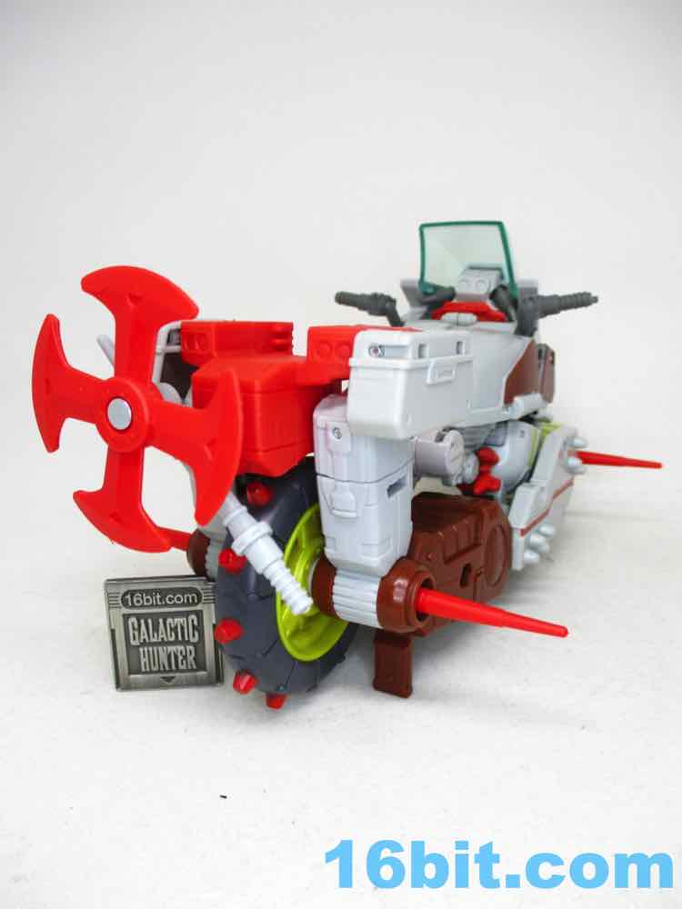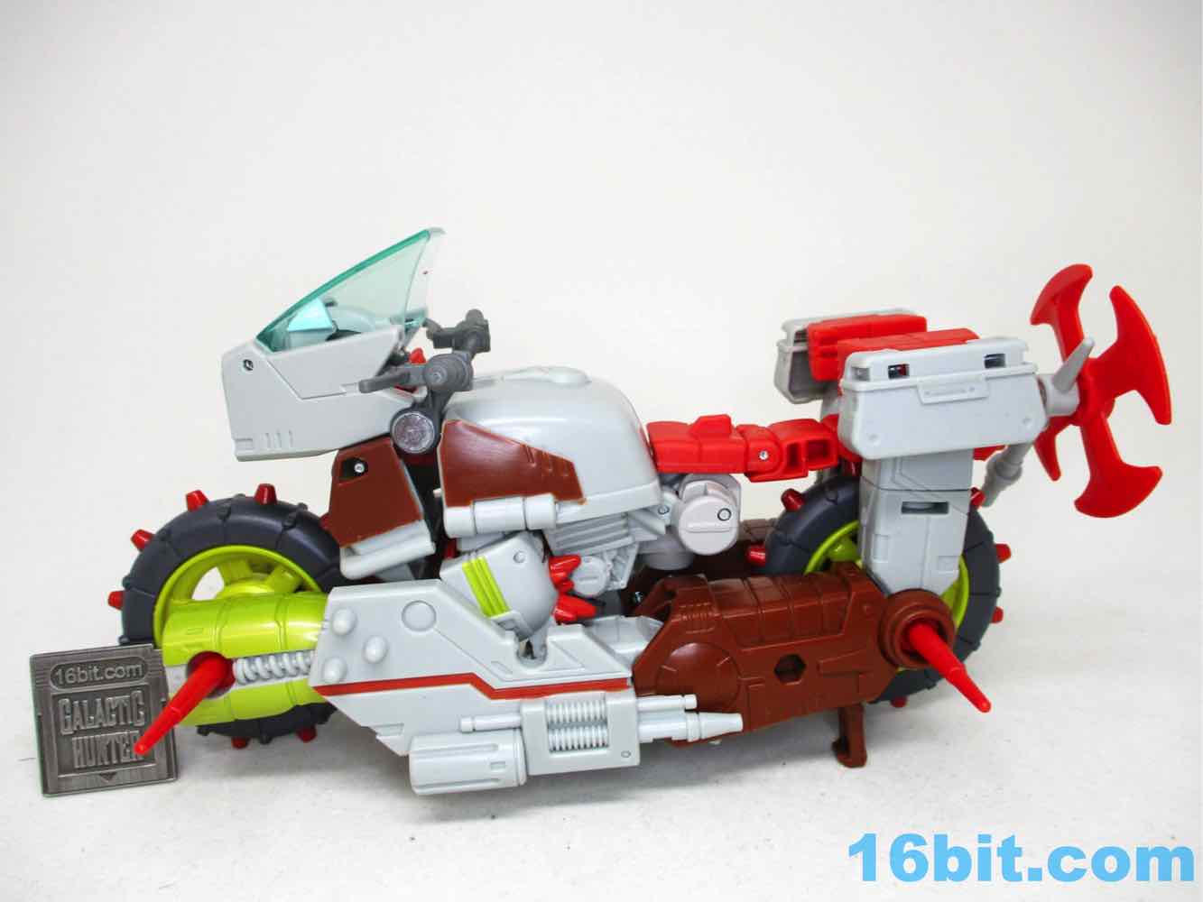 The bike looks very close to what we saw in Transformers: The Movie but it sin't perfect. The basic form factor is there, but things like his bike mode cannons are gone since the robot chest plate doesn't have guns, but the bike does - it worked out well for Wreck-Gar. The colors are pretty close, and the bike benefits from having a couple of kickstands tucked in the robot mode shins so it'll stay upright.