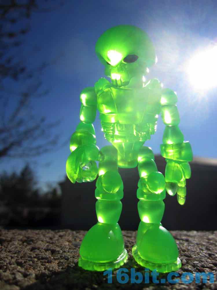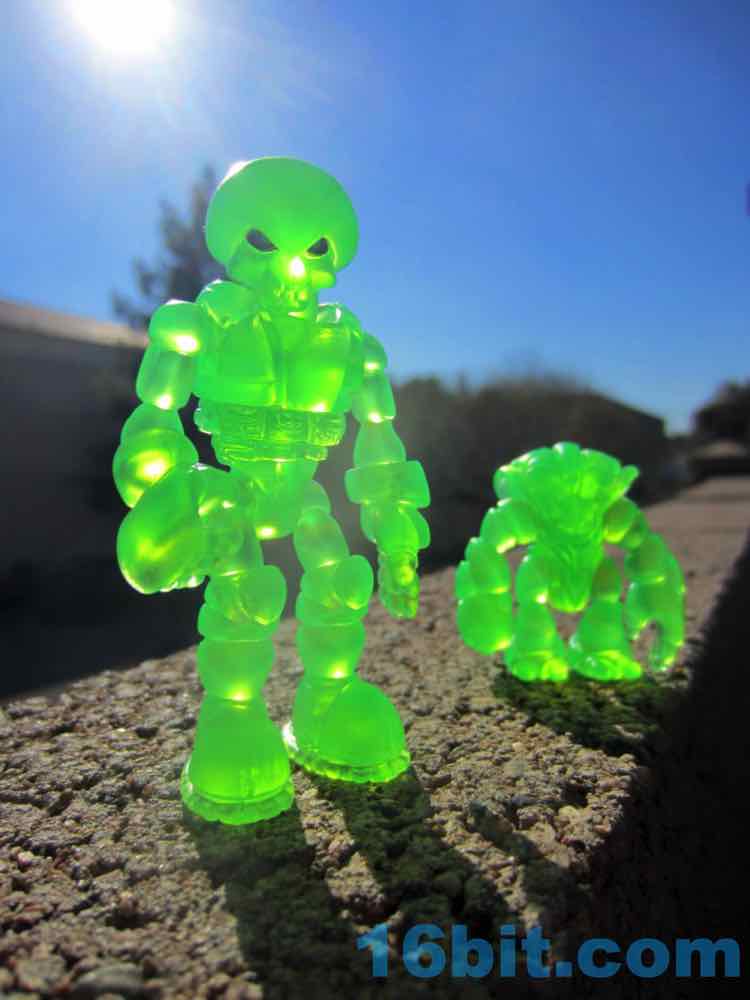 The only thing that could make this figure cooler would be some sort of vac-metal head on top. It's great, it sings under UV lighting, and it's not too expensive should you find one for sale on the secondary market. If you can get a Pheyden - any Pheyden - from Onell Design directly it's much cheaper, though, so maybe you should do that first. But I do like green, and this one did turn out nicely. Pheyden fits well with Imaginext and other 3-inch figures, and you'll find a lot of Onell Design stuff sizes nicely with Playmobil too. If you like indie toys, Onell Design's are probably the gold standard in recent years - cheap, fun, easy to customize.