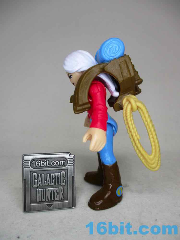 Imaginext is a line I wish I had all of and am glad I don't - completism is expensive and results in even more clutter, plus with an incomplete set I don't think I own any figures I regret picking up. This series included a surfer with a bad tan, a mutant tiger ape, Clawtron/Firestar I pilot, this figure, a cyclist, and a robot building man. I ran out to get not-Clawtron and not-Big-Robot back in 2019, and was hoping series 13 would get announced before I open the remaining bags I bought. It looks like non-exclusive non-brand-IP Imaginext figures may be a thing of the past, as Kohl's has some castle guys and everything else is Minions or Jurassic or Batman or Pixar. This figure doesn't appear to be anything specific - but given the casual outdoorsy, sporty, or generally outdoorswear catalog look of Adventure People it's possible she's a nod to the Mountain Climbers.