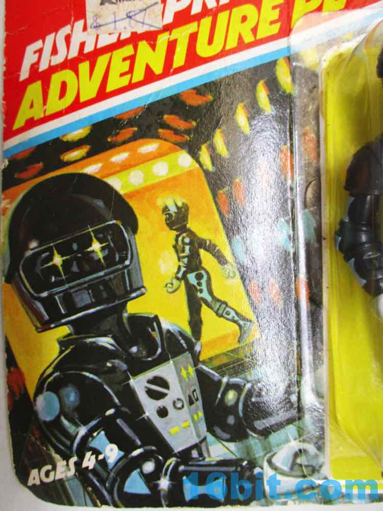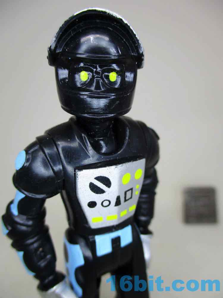 Rather than waste money on green face paint like the X-Ray Man and Woman or the Firestar-1 pilot, Fisher-Price was content to leave the entire helmet, face, and visor molded in black plastic with a silver paint swipe on top and two weird little yellow dots for eyes. It's striking, as seen on the cardback artwork - it's piercing, it's weird, and it makes you mad that you didn't get one as a kid when it was worthless.