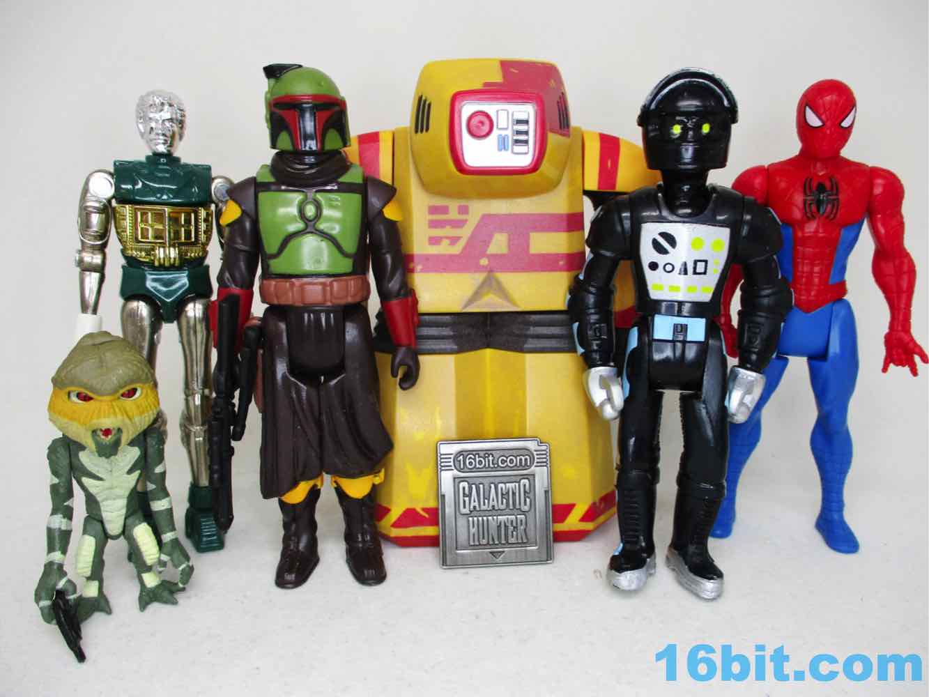 With 5 points of articulation and a great ball-jointed neck, you can see why kids probably wouldn't be at all upset to get these for their birthdays. It's not Hammherhead or Greedo, but it's a weird figure with no backstory. He's whoever you want, molded in black, with dials and knobs molded to his chest. He'd be right at home in the 1970s comic book world thanks to the stark blacks, subtle silvers, and the wild bright blue pattern on his arms and legs. The design was so striking that he inspired other figures just recently, like an Imaginext figure that's a grab-bag of black space Adventure People and Onell Design's Clawden.