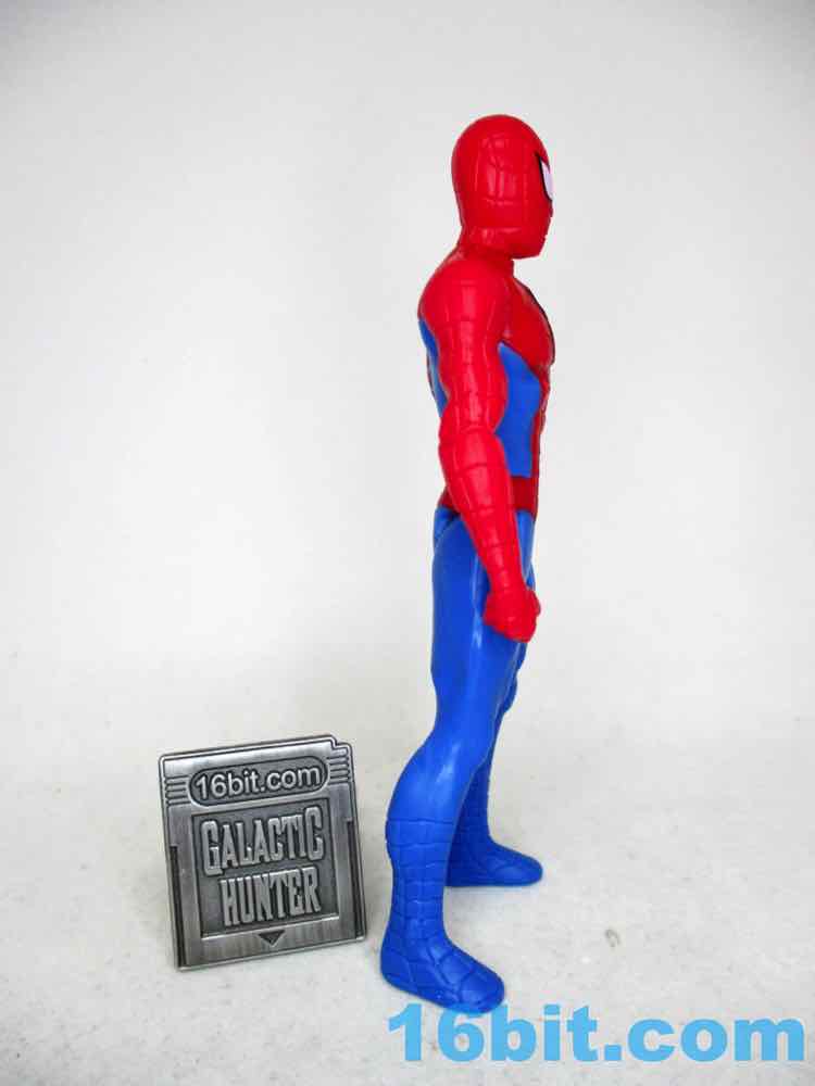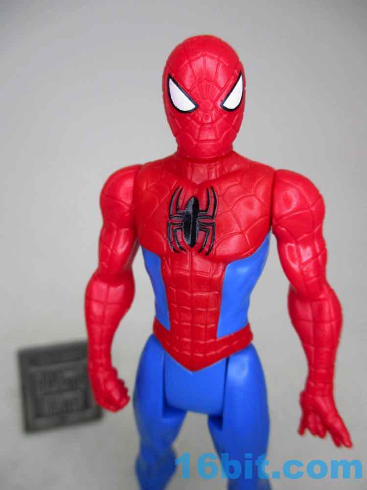 While the figure does look something like a bootleg thanks to the all-blue legs and all-red arms, it has a perfectly painted black spider logo on his chest and that molded red one on the back. It's also worth noting that his eyes were exquisitely centered on flat raised elements on the head, with a white blob and a black outline looking stellar. It'd look better with a thicker black outline, but I assume these guys not looking quite perfect is the point of Hasbro's "value" toy program. These value toys assure the world that kids can get an official and cheap Bumblebee or Optimus or Spider-Man, but they never look quite as good as the toys that cost $15 or more.