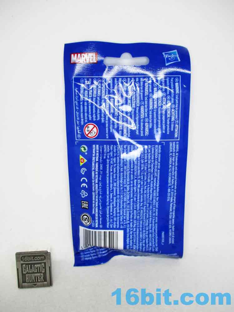 I could not resist the sheer weird ugliness that was this Spider-Man from Hasbro. Its construction shows actual innovation, and clever cheapening out. The figure has only 5 joints and stands about 3 3/4-inches tall, with unpainted and slightly off-model limbs. The toy is packaged in a clear bag with some graphics covering the lower legs, no doubt preventing people from seeing the fact that the feet are blue rather than red.