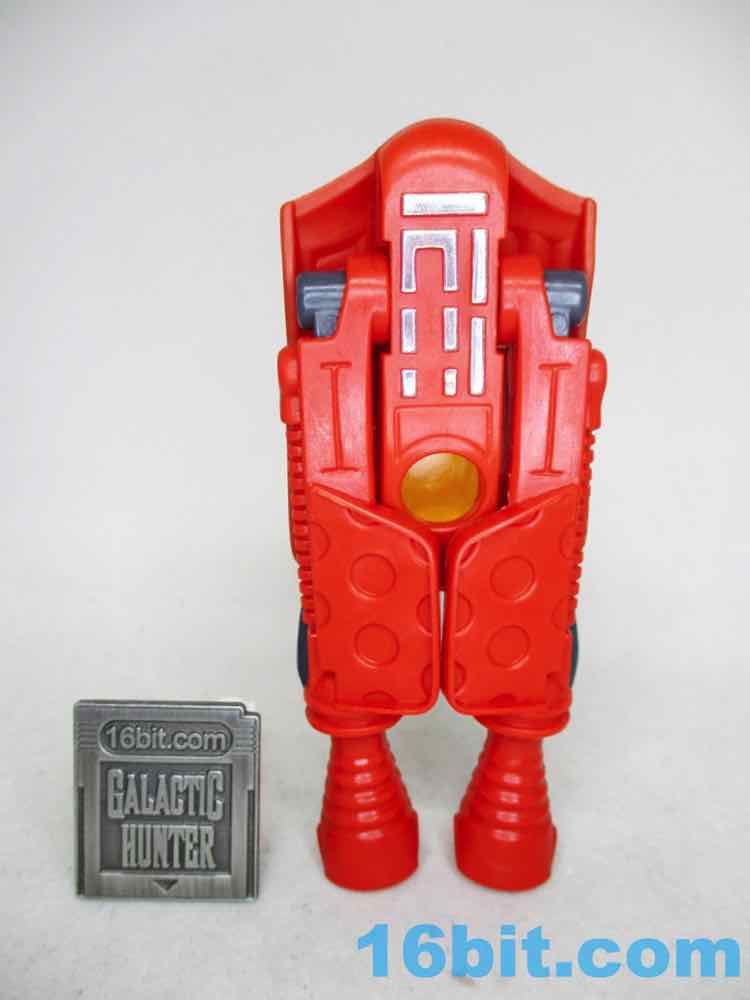 This figure just barely predates the transforming toy phenomenon of the 1980s, when GoBots and Transformers took the baton from Micronauts and then beat them to death. This is notable because the toy, as packaged, feels very much like a toy designed to play with a kid's imagination. In its default robot mode, it looks like some sort of robot... or washing machine. The feet look like space ship rockets, so you could rotate him and "whoosh" him around to pretend you got a tiny toy vehicle. However, the packaging shows the toy as a much taller, unfolded robot where the "front" is now the back and his center of gravity changes a bit. On my sample, the soles of the feet are slightly rounded so this means he struggles to stay standing upright without assistance or finding of a "sweet spot." Better tooled feet could have solved that, but such is life. It's good, but not perfect. The folded-up droid can stand with relative ease.