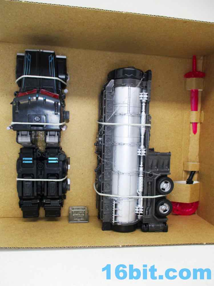 The figure is not left wanting for gear. The axe can fold up and store in the trailer, or be used as a pizza cutter, or combine with the sword. There's a blaster hidden in the tanker trailer that pops out to serve as a non-light-up blaster - and I'm very fond of the 5mm ports for additional storage in there. The sword is always a necessary part of a good Scourge/Nemesis Prime toy, but this one is a little weird. There's a tab on it that locks it out of being used with most figures. Scourge has an open hand, so you can slide it between his thumb and fingers - but any 5mm fists with a closed fist won't be able to hold it without modifying the hand or sword. I don't understand why they bothered to add this "feature," as it would be cool to share this accessory with other figures, but there you go. Hasbro gonna Hasbro.