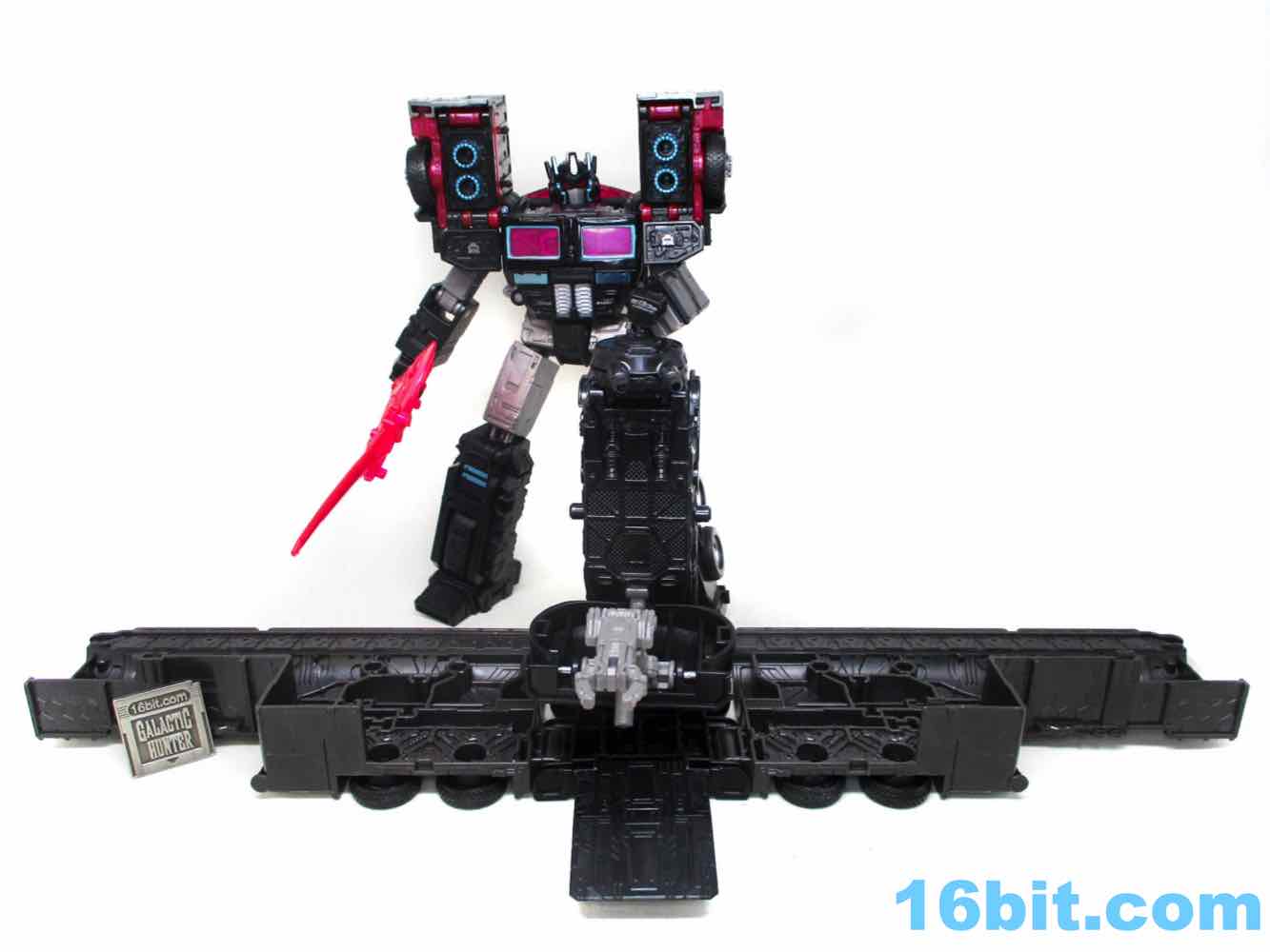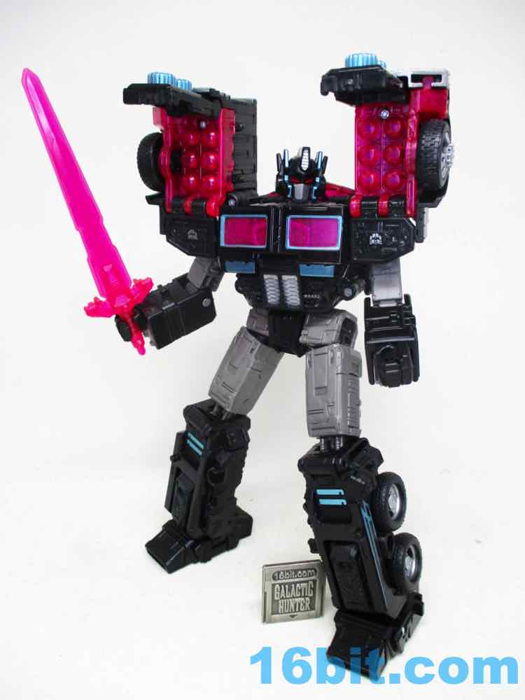 Item No.: No. F3077 Manufacturer:Hasbro Includes:Blaster, sword, matrix, trailer, axe Action Feature:Transforms from Robot to truck cab, also from trailer to battle station Retail:$55.97 Availability: August 2022 Other: Black Optimus Prime Re-re-re-re-re-re-revisited
