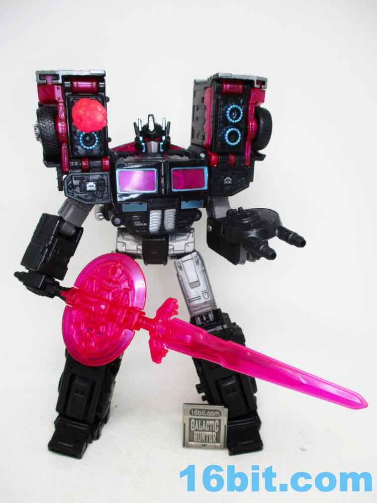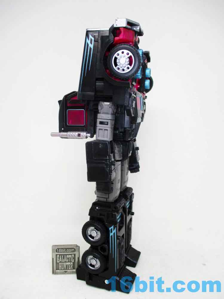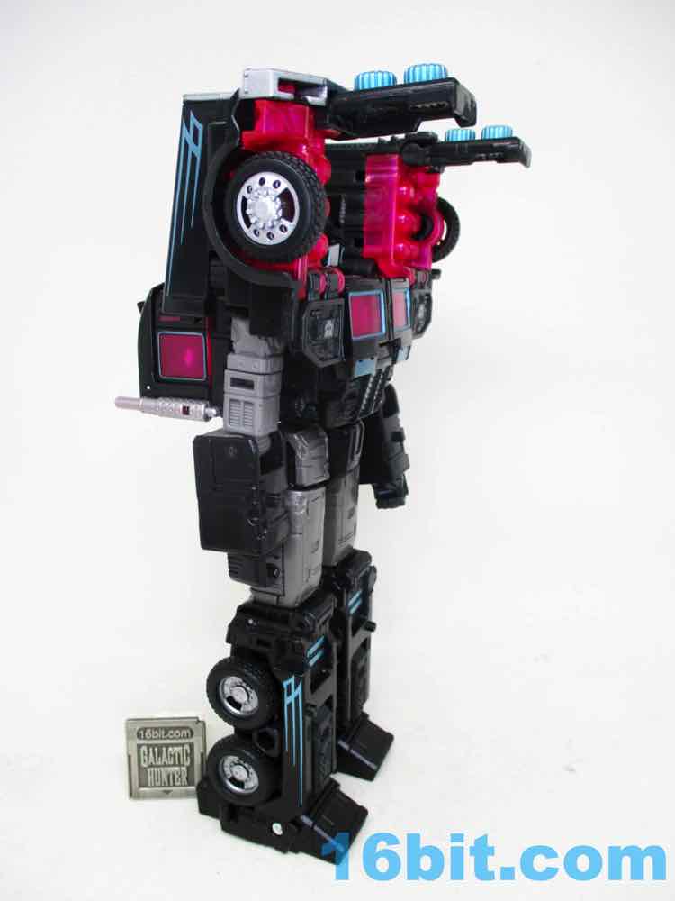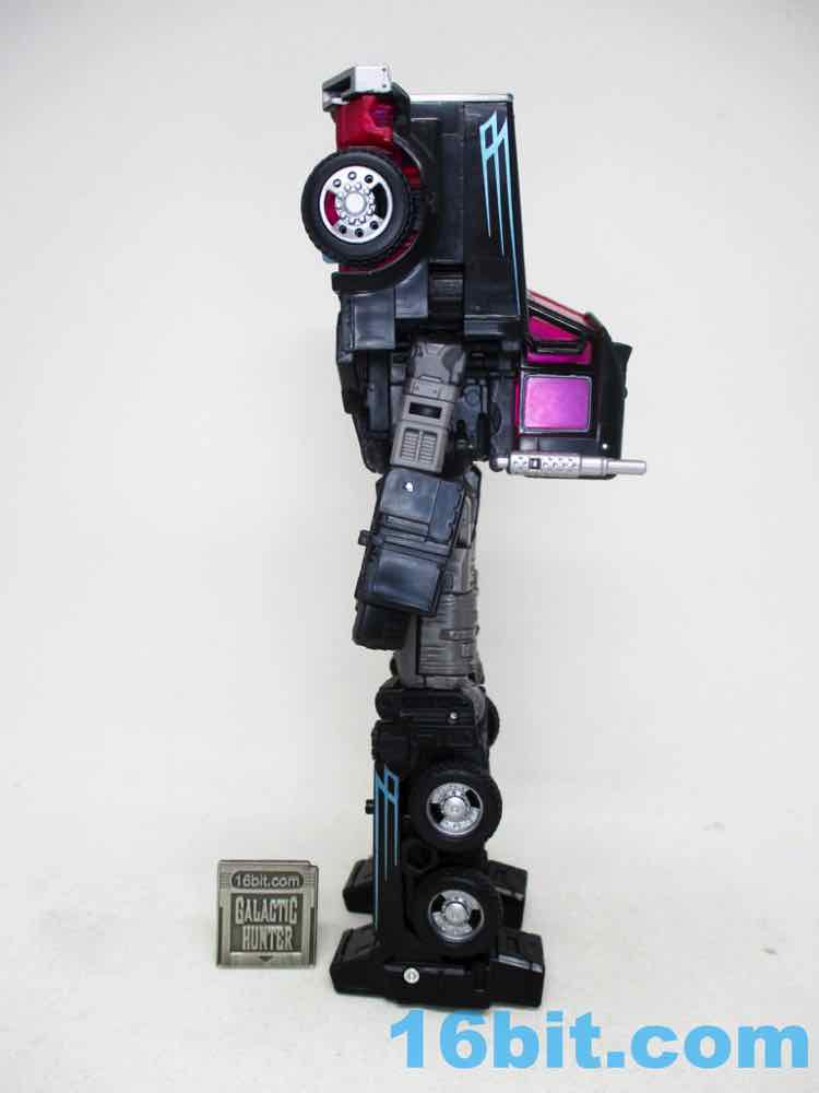There was a time when a black repaint of Optimus Prime was novel - and that time was about 21 years ago. This Robots in Disguise 2000 Universe Scourge takes its design cues from the Japanese and Korean release of Black Convoy, rather than the 2022 US release of Scourge. The former had upside-down Autobot logos on it (so it could make use of existing discs for a disc launcher) and some very pink weapons. The US release was redder and swapped out "Commando" symbols for Decepticons, and that's what I bought - because at the time, Decepticon symbols were something that hadn't been sold in the US market on toys in quite some time. Now? I think we'd all prefer the upside-down G2 Autobot faces, and mercifully, that's what we got.