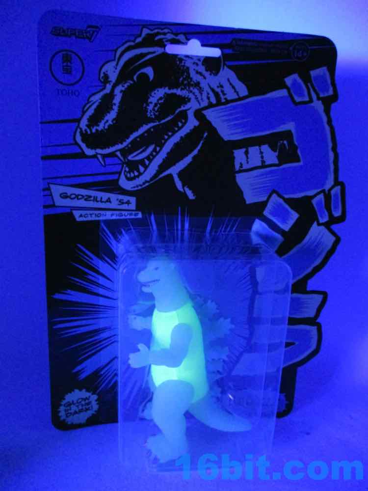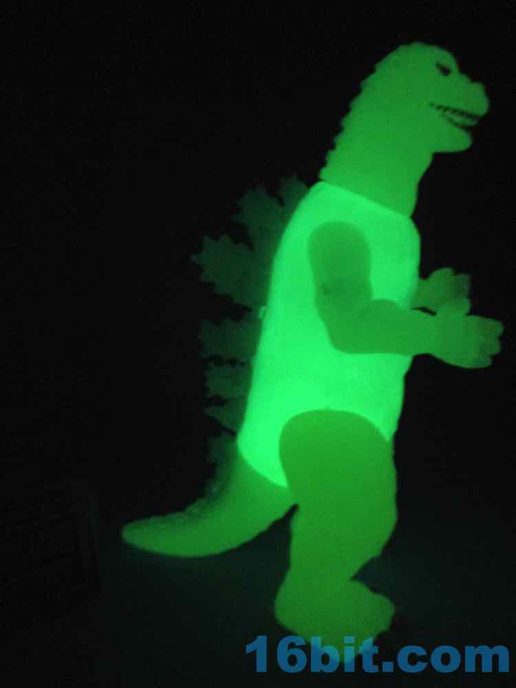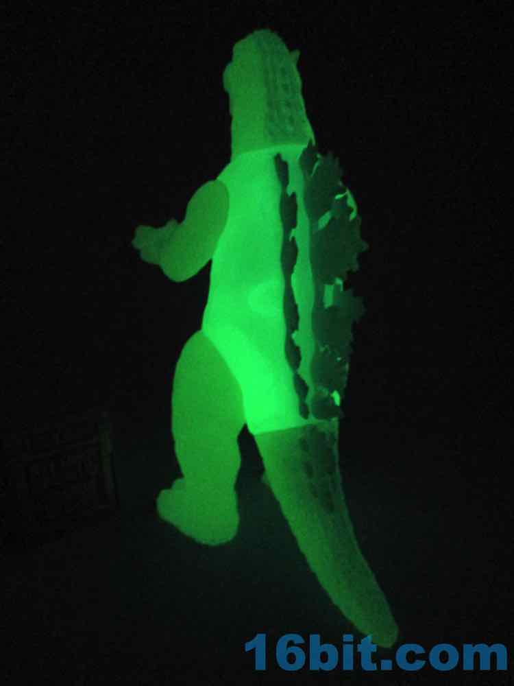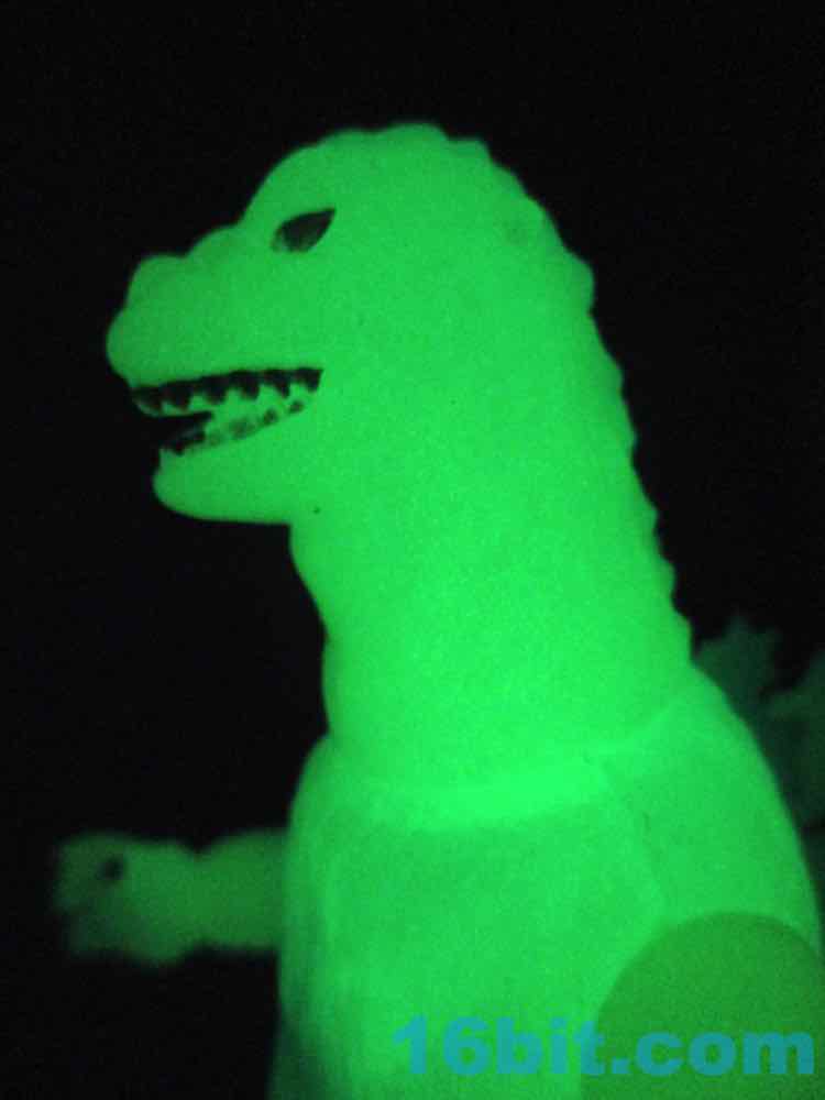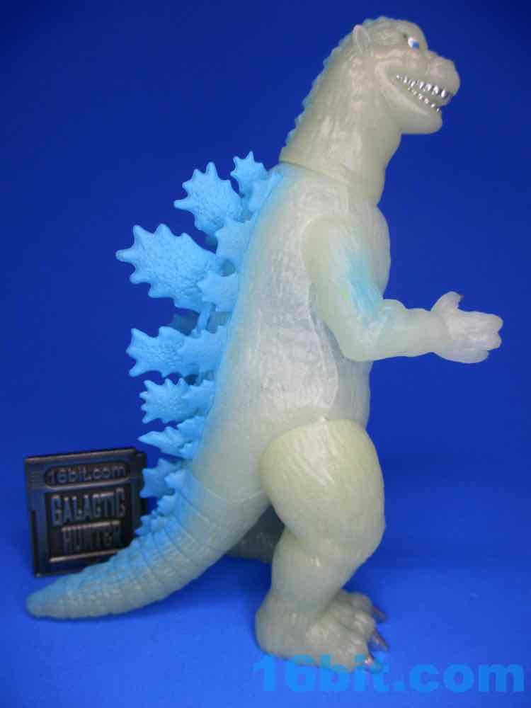 Super7's Godzilla '54 (Glow-in-the-Dark) reminds me a lot of an old glowing Dimetrodon toy [FOTD #2,394] that I've had for years - they're both glow plastic with blue spray highlights, which I assume is on a number of toys. For Comic-Con, Super7 took their base Godzilla '54 figure and cast it in glow with blue and silver highlights.