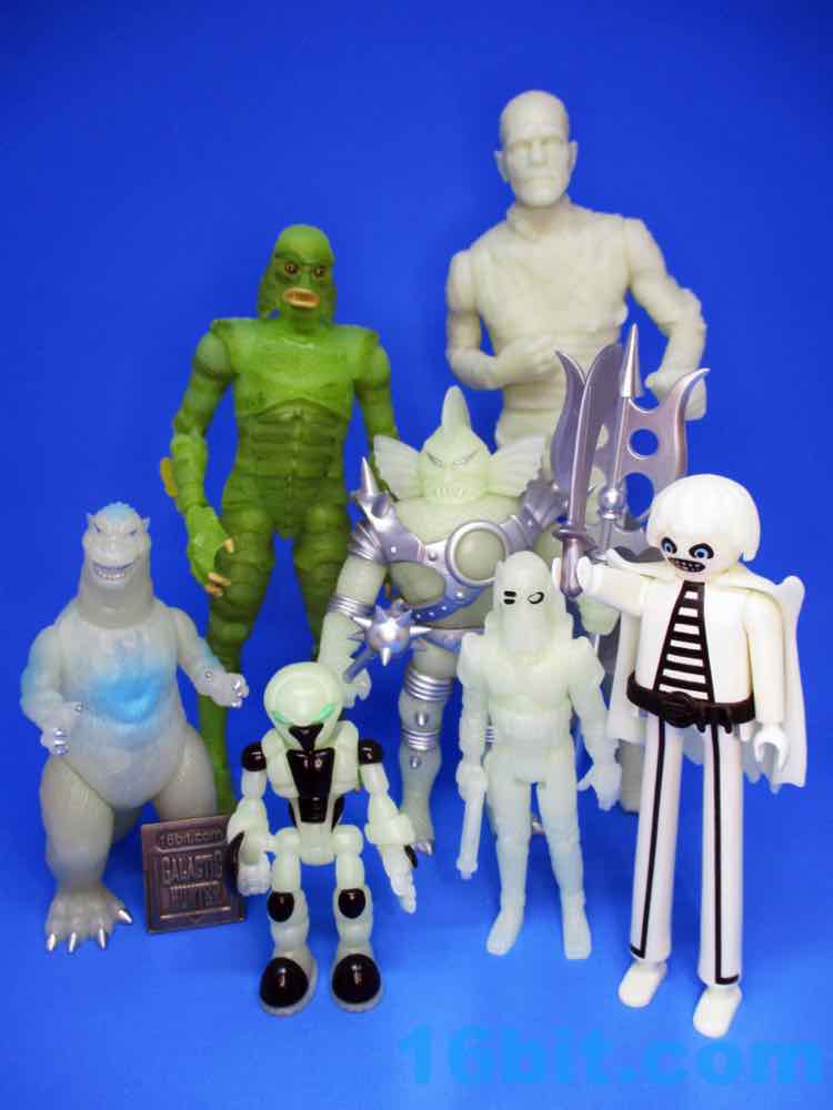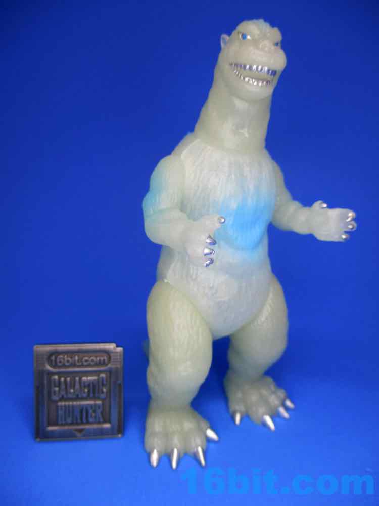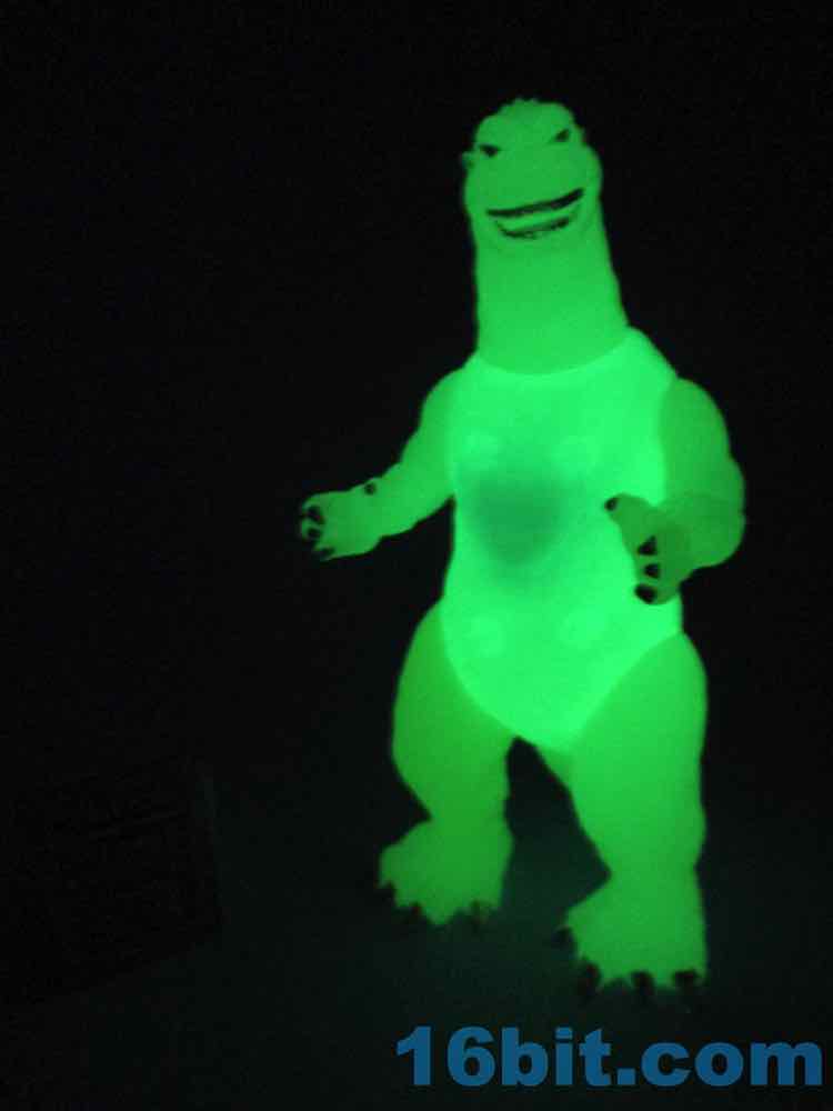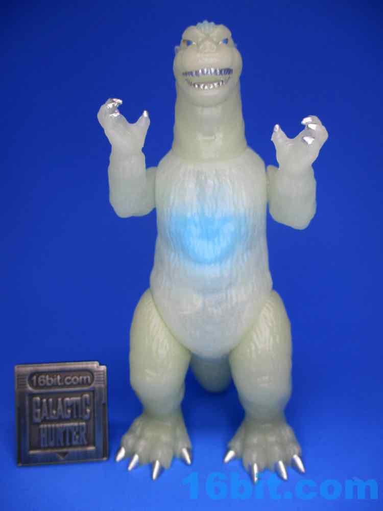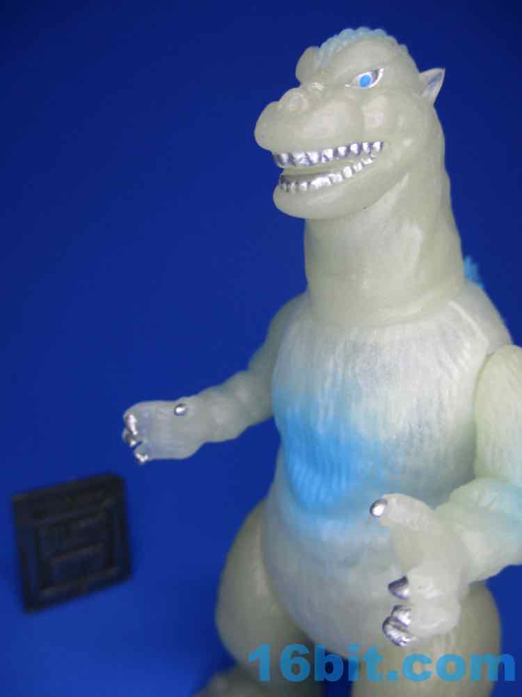 Super7's Godzilla '54 (Glow-in-the-Dark) reminds me a lot of an old glowing Dimetrodon toy [FOTD #2,394] that I've had for years - they're both glow plastic with blue spray highlights, which I assume is on a number of toys. For Comic-Con, Super7 took their base Godzilla '54 figure and cast it in glow with blue and silver highlights.