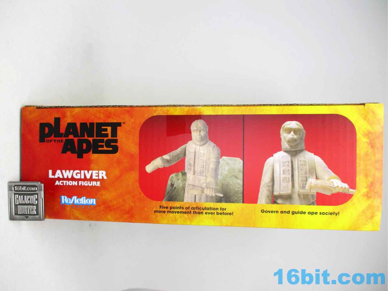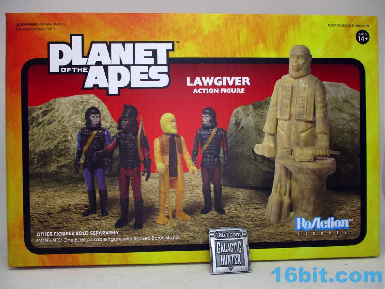The figure has foot pegs - unnecessary, as he's not going to fall over with those giant feet - and has no problems standing. His scrolls are molded to his hands, and you can pose him in front of the plinth included in the box. He can sit, but there's no reason for him to do so - this could have been a one-piece figure and you wouldn't complain much. It's rare that the ReAction Figure or any retro toy exceeds its mandate, but this one does. While Kenner did have oversized creatures and monsters in its toy line, usually you had action-attacking arms - there weren't any that tended to just be taller action figures. As such, this is a neat way to bring something very cool into play that most likely would never have been an actual toy during the 1970s or 1980s... but then again, Apes had two TV shows and five movies in under 10 years. That's a typical year for Marvel these days, but that's obscenely popular for a pre-VHS world.
