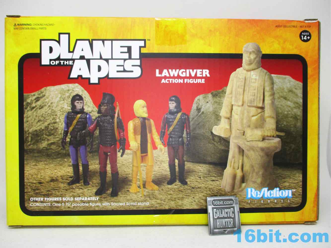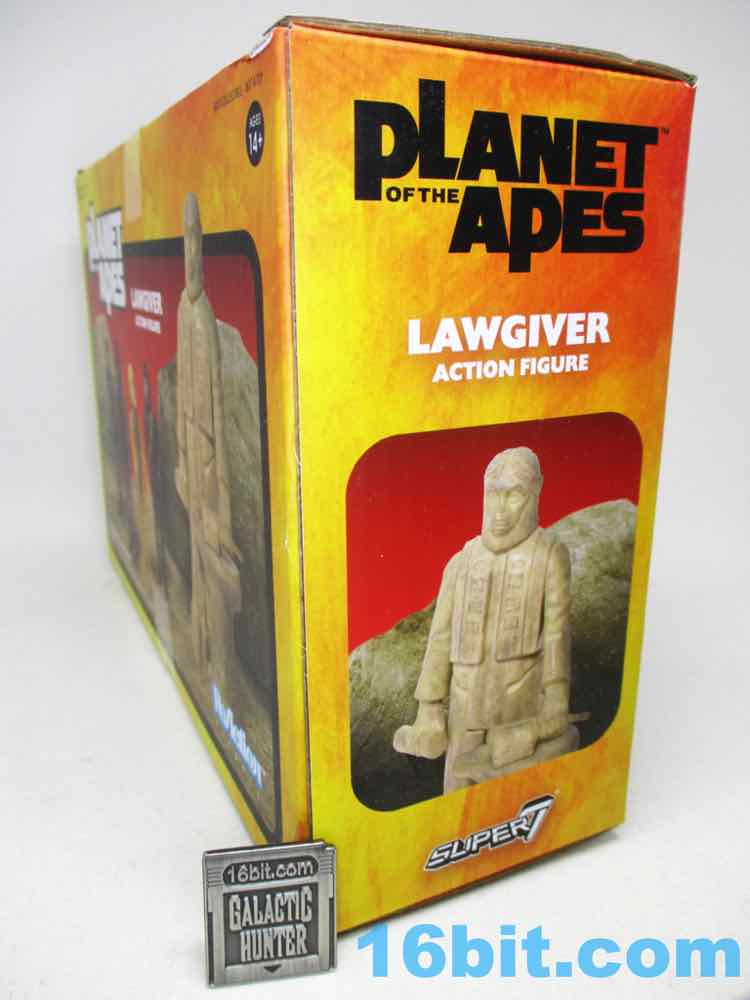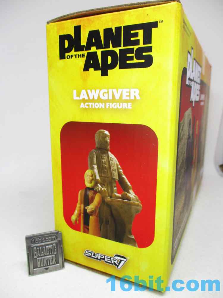 Super7's Lawgiver Statue isn't called a statue on the box, which makes sense as that may cause issues at customs. It is, curiously, an action figure of a statue that didn't do much other than bleed. The Lawgiver character appeared as an ambulatory being in the fifth film, Battle for the Planet of the Apes, which sadly didn't get a lot of action figures - with rocket-firing buses and evil human mutants, it's filled with weirdness. And Paul Williams! The statue appeared in (and was referenced in) other movies, and when the character did appear it was actor/director John Huston.