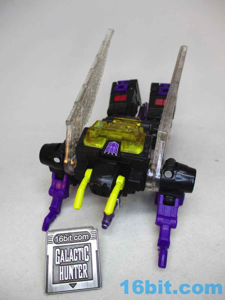 The robot doesn't break any new ground, but it does stitch together cartoon and toy elements into something new that is, obviously, not going to be the final take on the character. The original toy had chrome wings and Hasbro has rarely used vac-metal silver - instead, you get clear colorless wings that have a bug-like texture that neither matches the toy nor the cartoon. The colors seem to go with a toy-inspired look, dropping some of the labels but keeping painted vents and other design elements that recall the old labels. The Decepticon sigil was moved from the right pectoral to the neck region, and the head is a pretty god mix of all worlds. It looks like Kickback - but it isn't a perfect update to the original toy. By not ever delivering a perfect cartoon or toy update, Hasbro and Takara-Tomy arguably have a reason to keep fans on the hook to buy additional masterpieces and retro remakes for years to come. There's still a reason to try again, unless you're hitting the end of your desire to re-purchase a toy you already own and probably haven't played with enough.