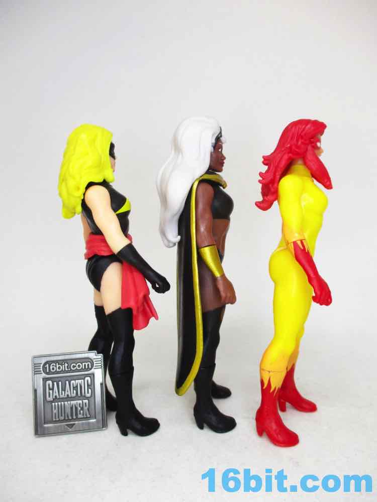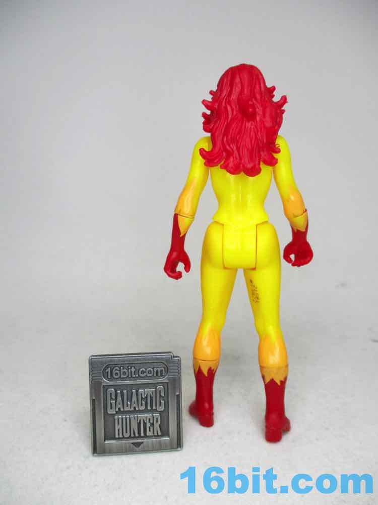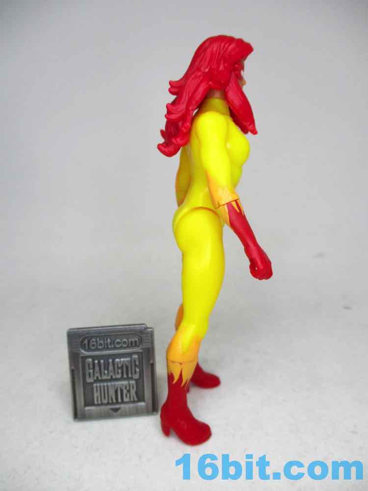 This Kenner-branded 3 3/4-inch figure is bright and cheerful, and speaks volumes of how the toy market works with repaints and the perception of women body types in the media. The figure shares a body and most of her limbs with Storm, Phoenix/Dark Phoenix, Black Widow, The Invisible Woman, and Elektra, with some more parts sharing with Storm and Carol Danvers Captain Marvel. The parts sharing isn't unique to women characters in this line, but in comics and superhero toys there's not a lot of variety in the physiques. You get the same figure with the same shoulder joints, neck joint, wrist swivels, and hip joints, plus there are separately molded boots so you can change up the figure design while continuing to reuse most of your molds. It's quite efficient, but the fact that men can be rocky, hulky, thin or wide, and women are only one body type says a lot about the culture from which these characters came. In the comics, even She-Hulk is similar in terms of proportion - just generally larger.
