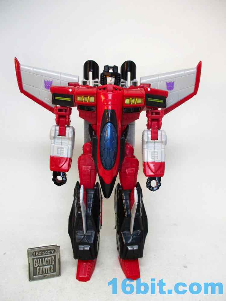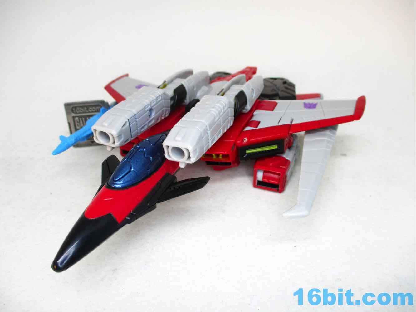 The vehicle mode has no electronics and no Mini-Con ports, and also drops the rocket launchers from the original. And it costs more, and is smaller than the 2002 Armada Starscream. It looks very similar, but lacks the "oomph" and really does show just how many toy features have been weeded out during these lines' transition from "mostly for kids with nods to fans and collectors" to "nakedly appealing to 30-40-somethings." It's a sturdy jet, but you have to bring your own blast effects for the manually deploying cannons and there's no landing gear. It's by no means bad but it left me pining for the days we got less articulation but bigger, more feature-laden toys.