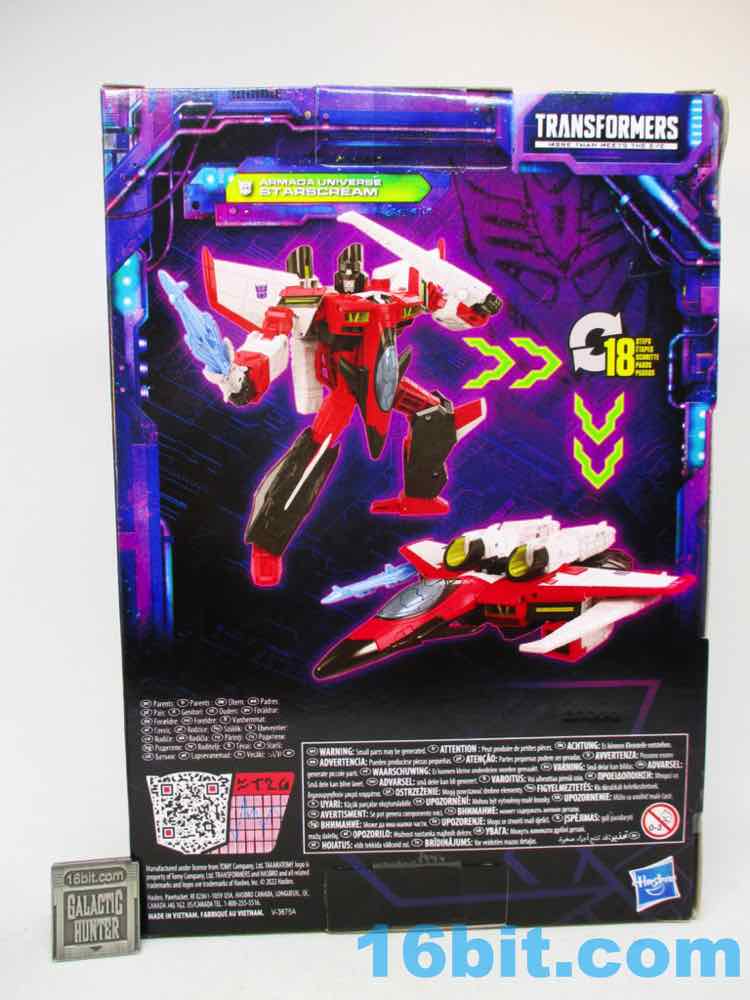 While I don't like Armada Universe Starscream areas much as the original toy, I think fans of the cartoon might prefer him - they clearly took inspiration from the cartoon colors. There's less yellow! And he has red toes! Sadly, they left off things like like Mini-Con ports.