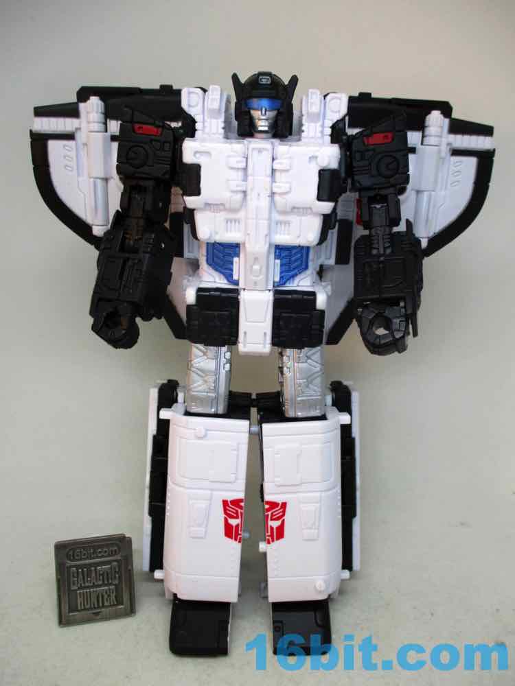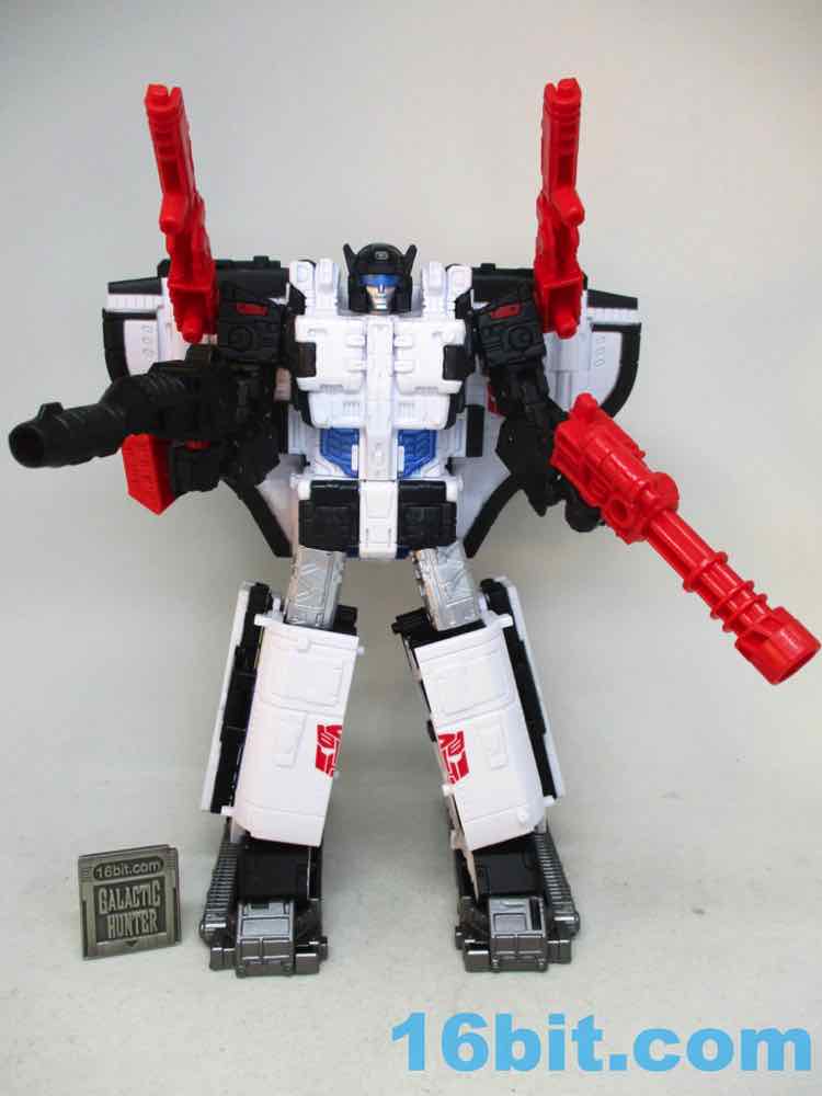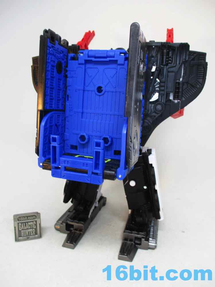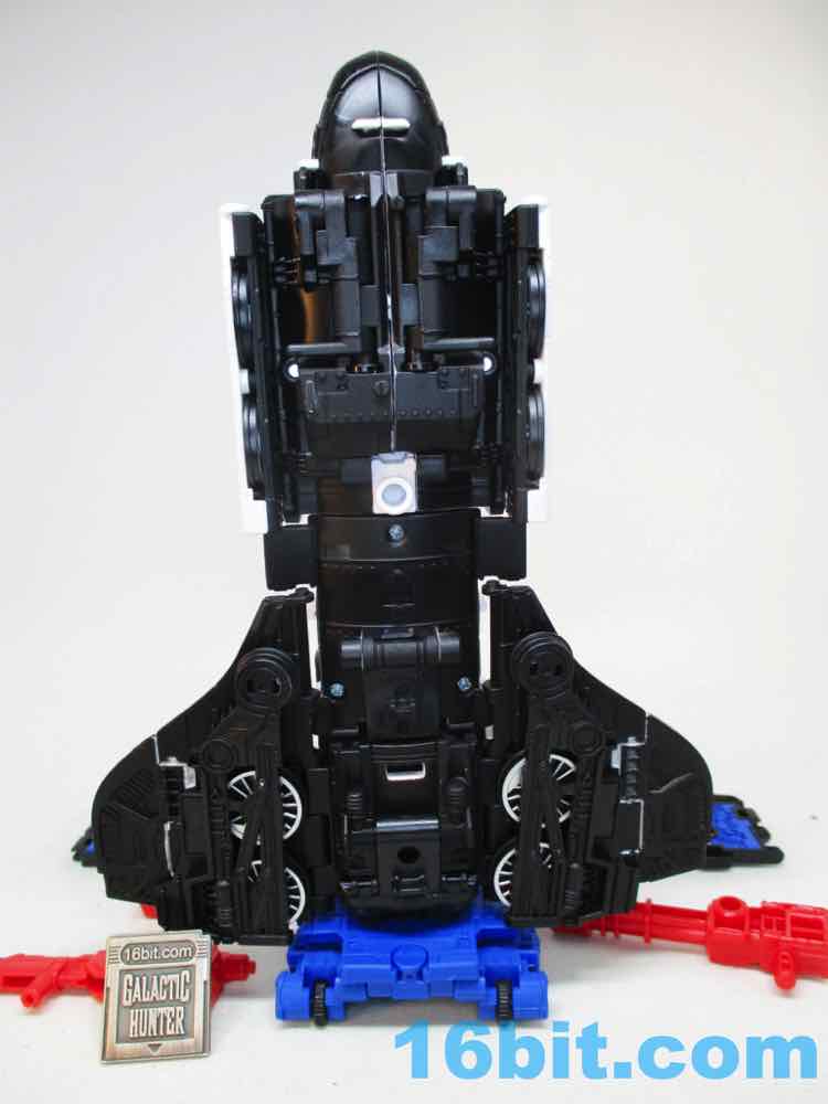 The robot mode is pretty great, but doesn't look too much like the original 1989 toy's silhouette. You don't get pointy wings, there's no shuttle nose chest, and the leg coloring is very different. Thanks to the magic of pretools, you do get a pretty excellent head with a silver face and blue visor - which would make this a "good enough" release. The sculpted detail was good for a quasi-Cybertron, faux-Earth Astrotrain but it probably works better as a new (or reasonably unknown) character like Galaxy Shuttle. The powered-up mode adds tons of weapons and a backpack, plus elevator shoes. My Astrotrain was a little loose in the joints, so this tighter sample is much more fun to play with - he won't flop over! Plus the extra weapons are ridiculous fun. I like it, even if we are sort of spoiled for space shuttle toys in recent years.
