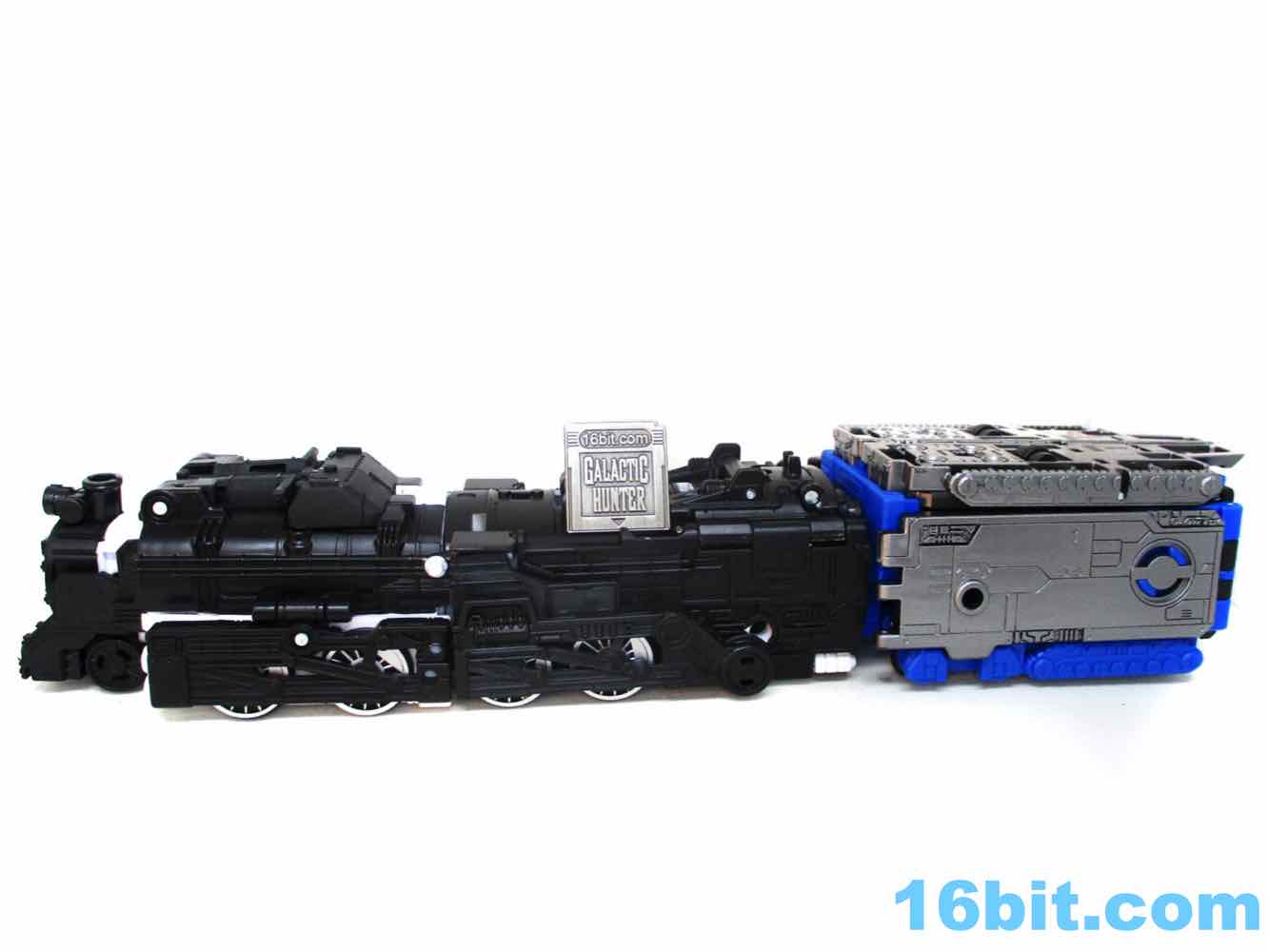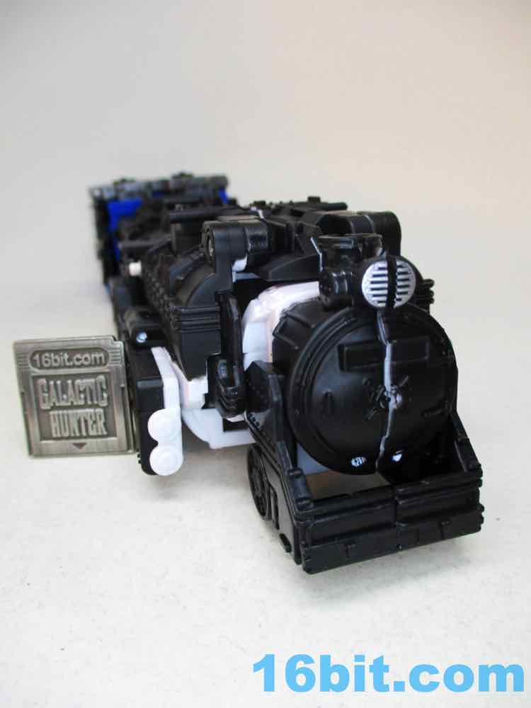 Someone during development saw the train mode and said "ugh." This is good - the box art and renders show a largely unpainted train, while the final one is slathered in black to look like a cohesive rail vehicle rather than a weird jumble of parts with train bits slapped on the sides. Thanks to the unified color, it looks great! There are wheels and, again, the tender plugs right in. Everything looks good and fits well, although it can be a little tricky to get all the parts at the precise right angle. The tolerances are good, but could probably be a little better. It still seems better than my experiences with Astrotrain. There's not much you can do other than push him around and plug in the weapons - which isn't nothing, but it would be awesome to have more going on with a vehicle mode on a $56 toy.