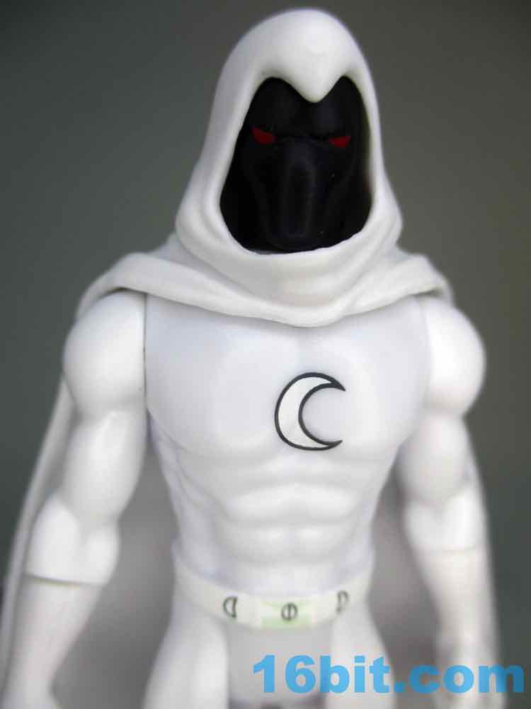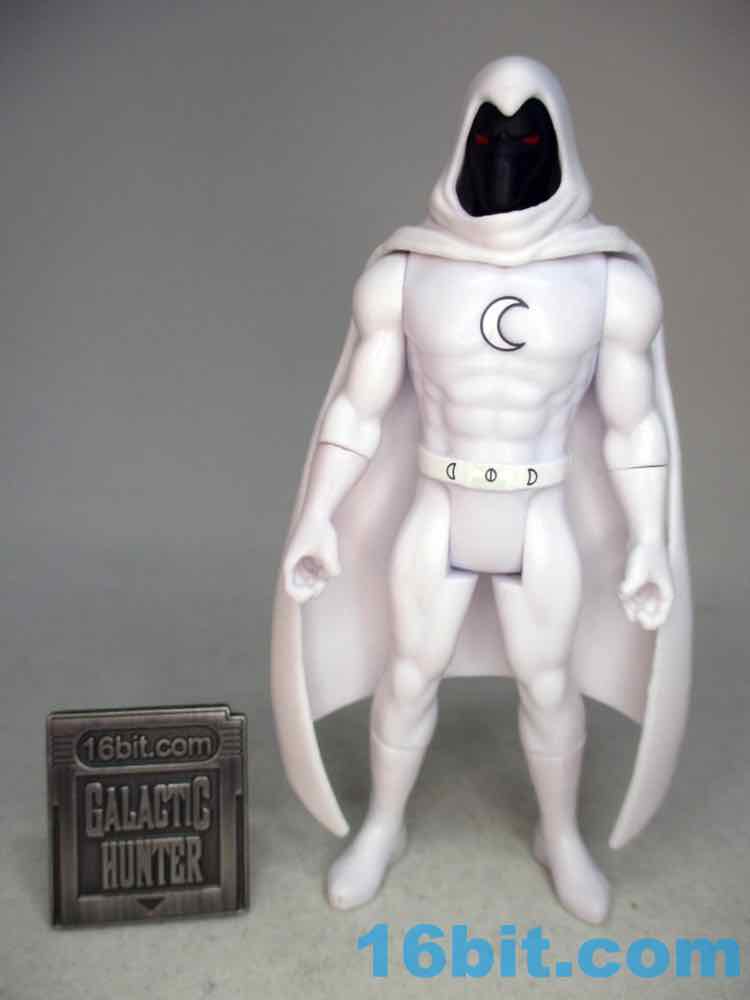 The card art is quite bland compared to other figures in the line - just some action lines and bold colors, no debris or buildings or anything - but at least it looks nice. Thanks to the inflexibility of the cape I'd say it's not as fun as some of the other toys in this line, but as a collectible it looks great and he stands with the best of them. There are other more expensive and more highly-articulated Moon Knights, but this one is cheap - and I like cheap. Since I want to wallow in the fields of 3 3/4-inch figures, I have no reason to upgrade. If you want a four-inch Moon Knight with an accessory and more hints of silver, I'd recommend checking out Hasbro's Marvel Universe release. It's real nice, but also kind of expensive now. Bring on Werewolf by Night, please.