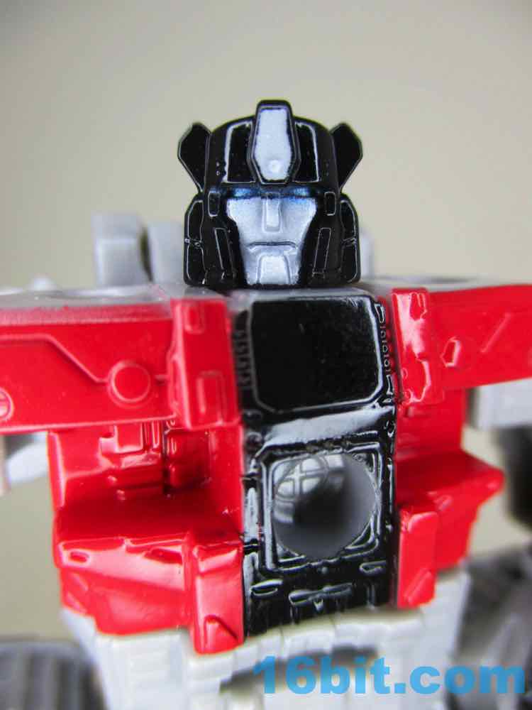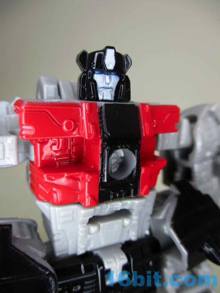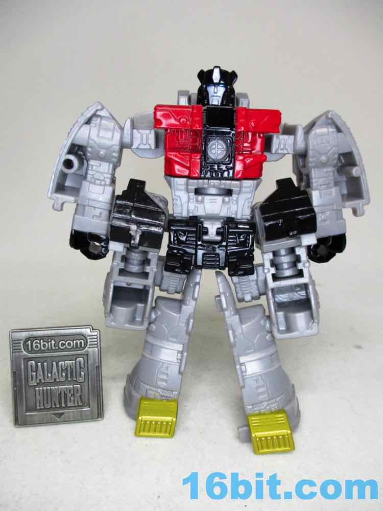 As the eventual combiner mode's lower torso, Sludge most likely will be one of the two worst toys. The good news is that he's pretty sturdy and looks exactly like Sludge. You can't accuse him of being anything else - the familiar head is there, with the cartoon's blue eyes. There is no chrome or clear plastic with shiny gold inside, but you do get some gold and silver paint. In robot mode, the bright red, black, and gold look pretty fantastic but fail to make his shortcomings any better. The arms are pretty stiff with weird shoulders which will most likely help him be a stable combiner torso. The legs have massive kibble on the sides, and he loses his "wings" completely.