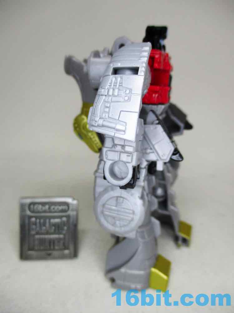 Dino mode is disappointing. The basic form is there, but the rear legs have genuine thunder thighs and there's no articulation to speak of. The tail is a stump - present, but a stump - and there's a visible hole through the middle of the dinosaur.