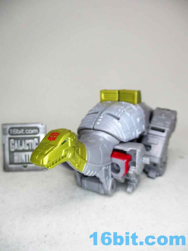 Transformation is a snap - but the results are weird. Looking at the robot in the box, the giant dinosaur limbs make it look as if he was mistransformed. He wasn't. Conversion is very similar to some of the other Sludges, but you have to connect the neck and head when you open the box. After that, it's pretty smooth sailing.