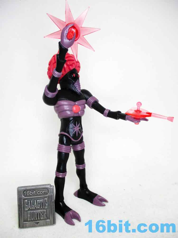 The figure has pointy clear pink accessories that fit in his hand claws nicely. The figure functions as well as ever, although the neck joint on mine has a little more "give" to it than previous releases. It's still a wonderful figure, and he's jointed like an old Kenner Star Wars figure but better. Not only can he pop apart at every joint, but they have bonus ankle, knee, and bicep swivels. It's not as plush as a modern super-articulated figure from Hasbro, but I genuinely appreciate the figure's stability and the easy way he can just stand or sit without a fight.