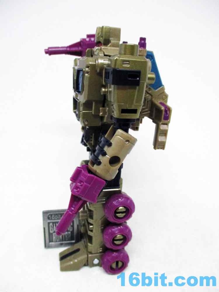 The obscure and weirdly named Black Roritchi is Fasttrack, but in gold, with gold paint. Some other colors were tweaked a bit, but it's still basically the same, fairly fun toy. My sample has looser joints, and all copies have a slightly different head. The front of the head mold is effectively the same as Fasttrack, but for some reason the back half was retooled to remove the antenna, and has a completely different sculpt. On one hand, I appreciate the effort to make it different and match the slightly-different head on the Japanese cartoon Super-God Masterforce. On the other, this is an item that just needed to be a simple color swap - so why spend the resources? Well, hey, it's better than not, right?