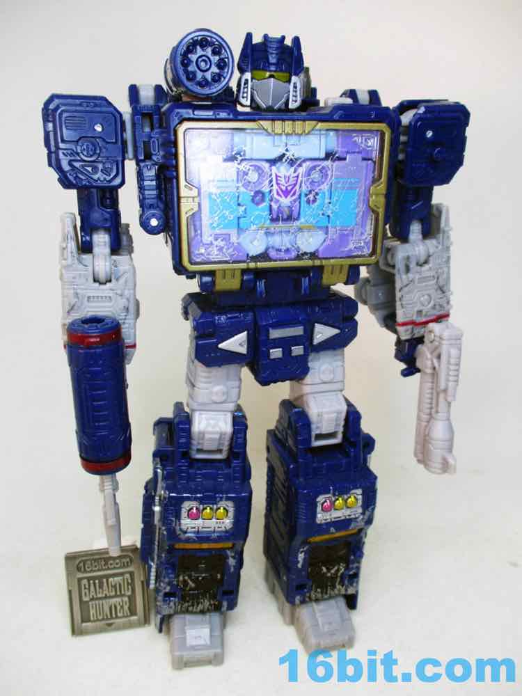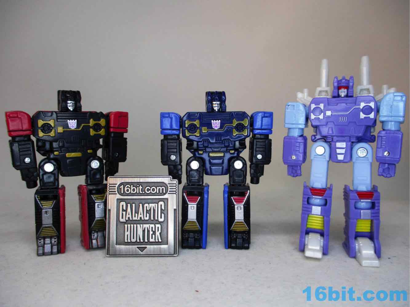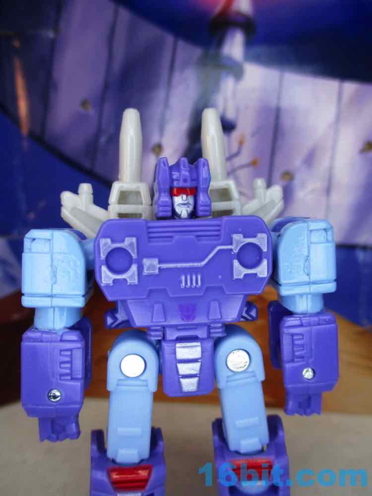 The robot mode is slightly better than the black and red Siege Rumble. He has improved detailing and actual feet now, which makes him the better version to buy. I prefer this new blue one - even though the landmarks are the same, it's a little less flat and a lot more lively. The deco is improved with more paint applications, and Hasbro didn't put giant copyright and SKU markings in plain sight to make it look like an awful, ugly mess. This is definitely the refined version after the rough draft in 1999 - also, this new one fits well in Soundwave's chest.