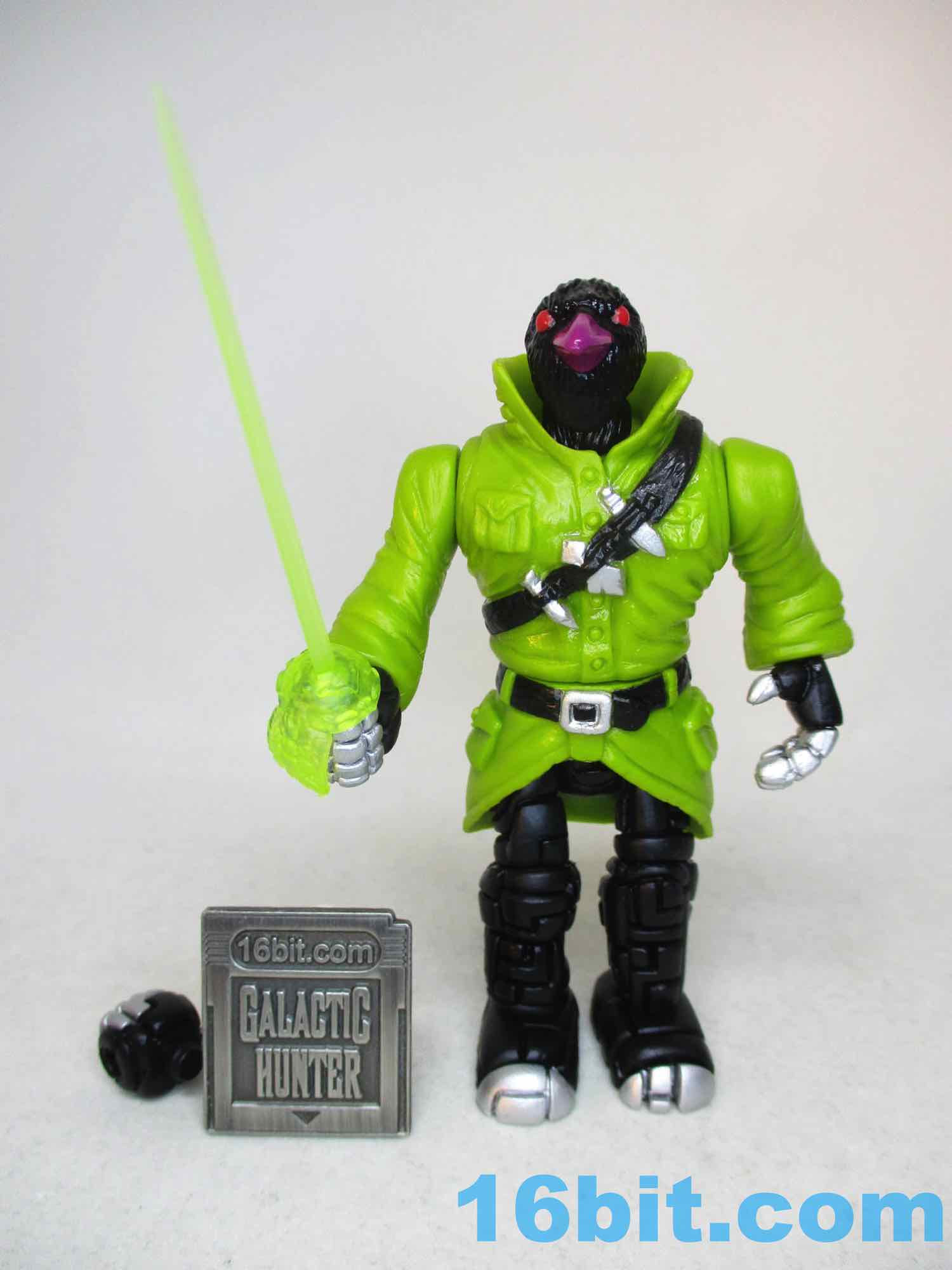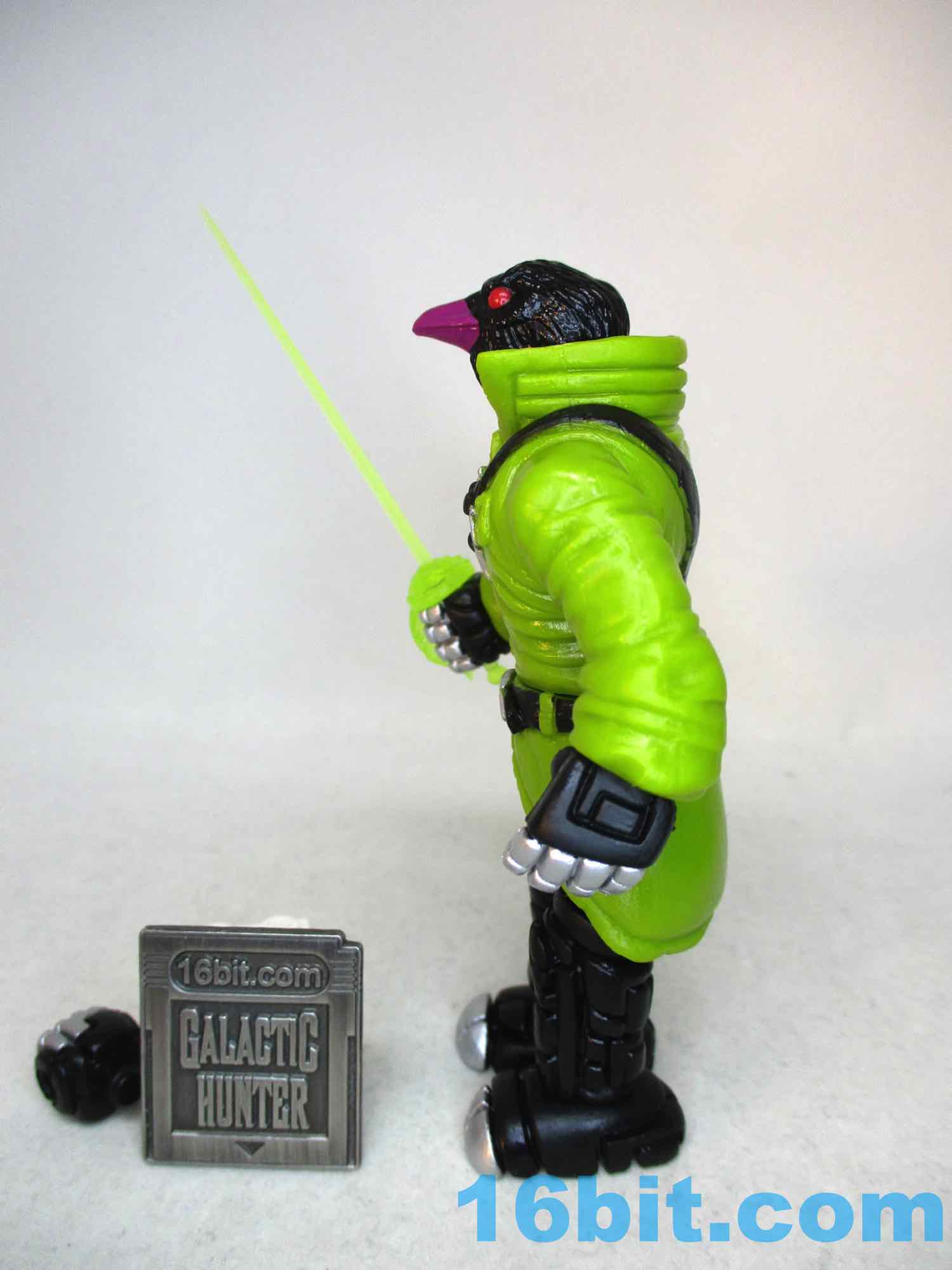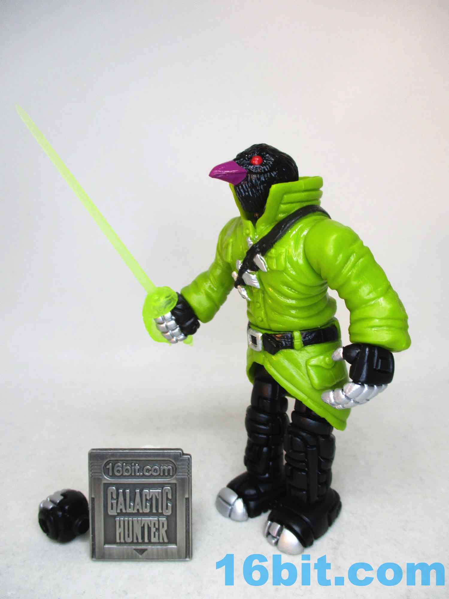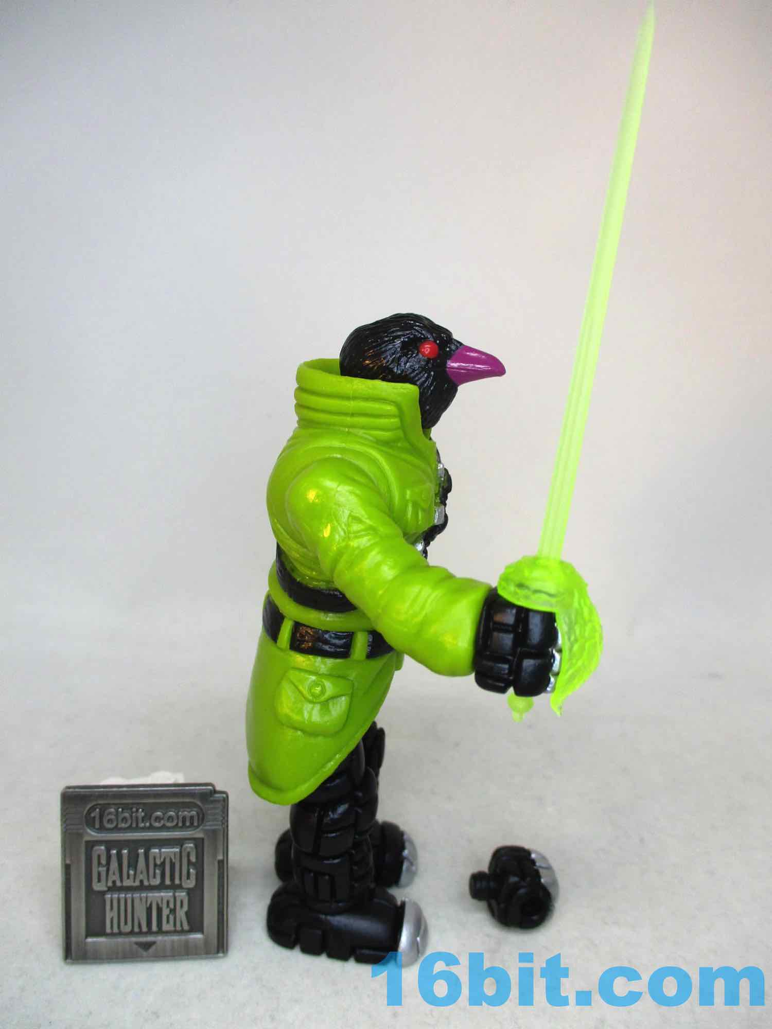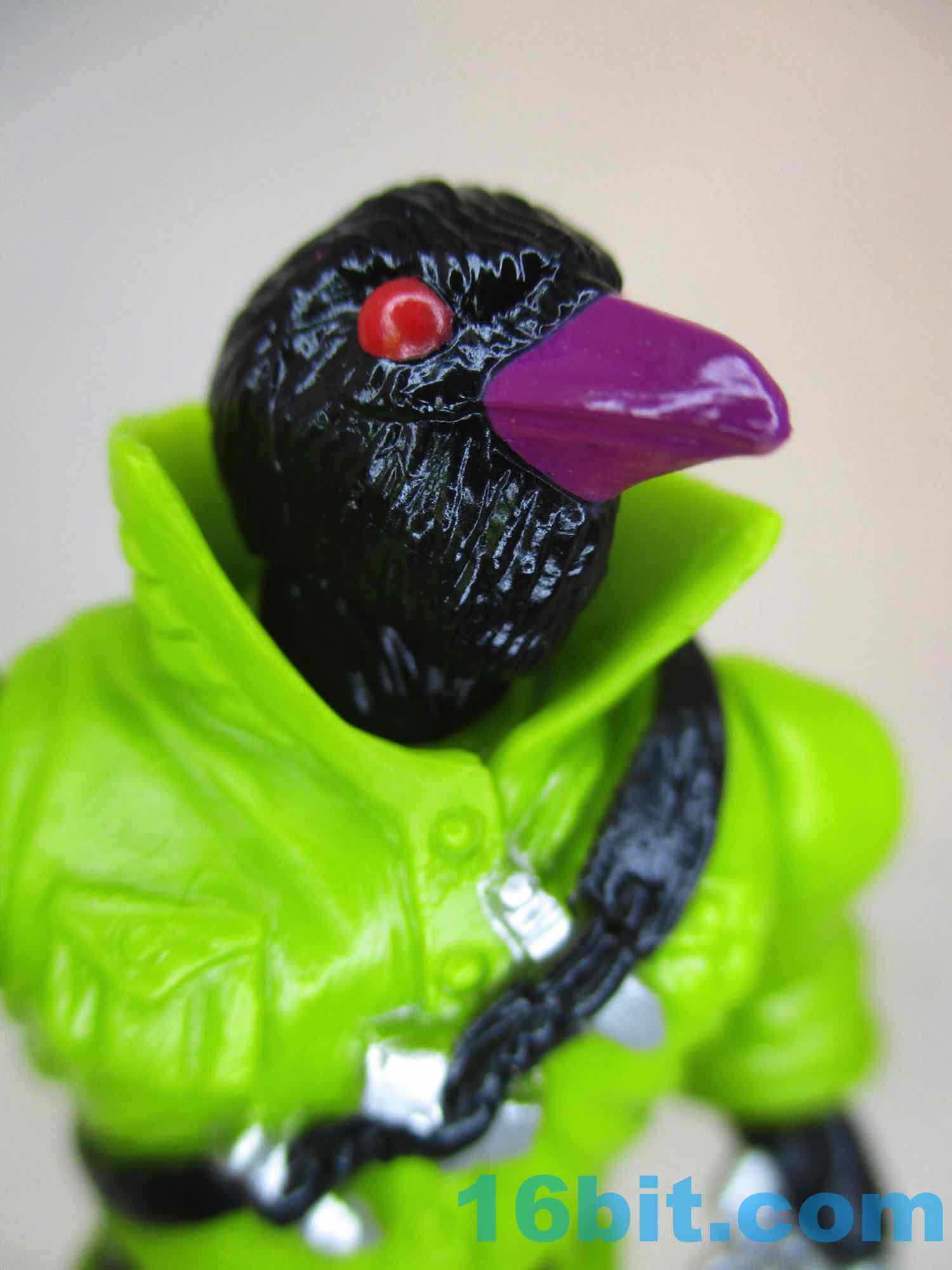 This is my first Crow Head figure, and I was delighted by the glossy finish on the feathers. His purple beak and red eyes are just different enough to pop a bit, and you can see the mouth continue just a bit beyond the beak. It's a nice little weirdo. The included two-part sword has a removable piece, and it's worth noting the clear green blade is quite pointy. Don't give it to your kids. It's not unlike the sort of thing you might impale a cherry with in a cocktail.