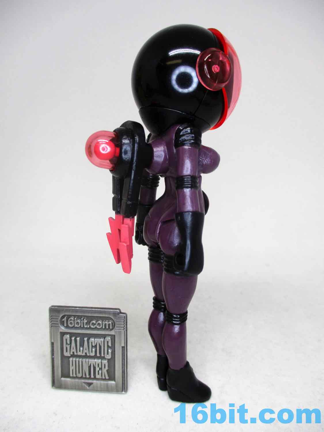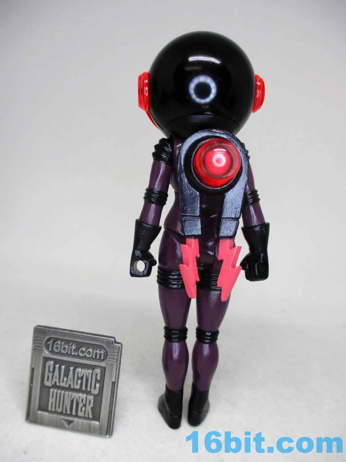 Molded in what seems to be almost a wine color, the figure has a black stripe down her body and black rings at her joints. You can barely see some of these details, but that's also what makes a figure like this fun - you can see things in person that you might not have noticed in the photos. Her hair and skin positively pop, as does the bolt pair bursting out of her backpack.