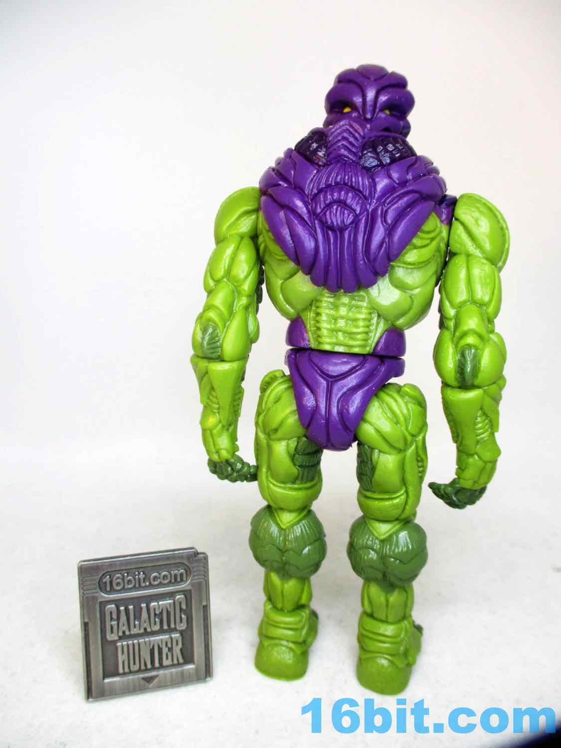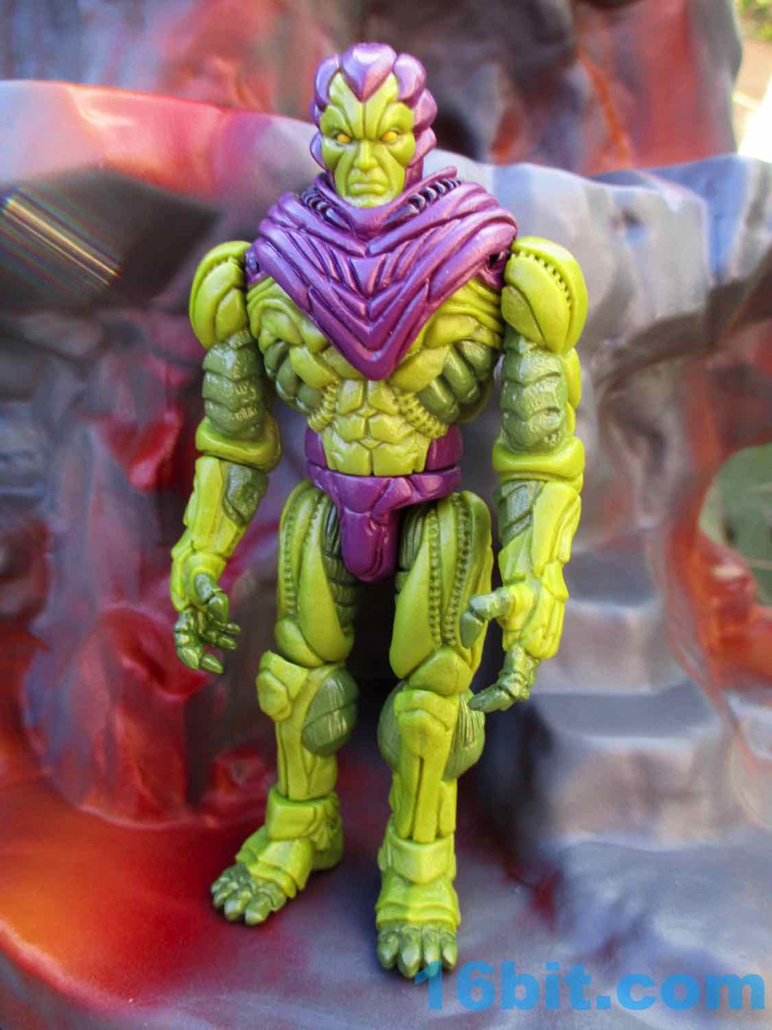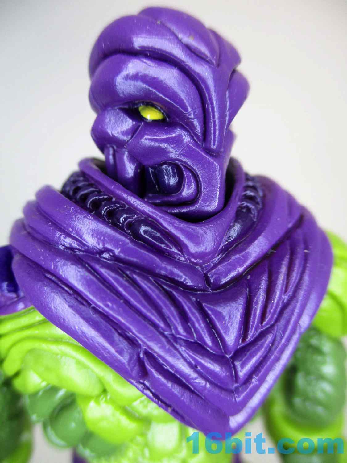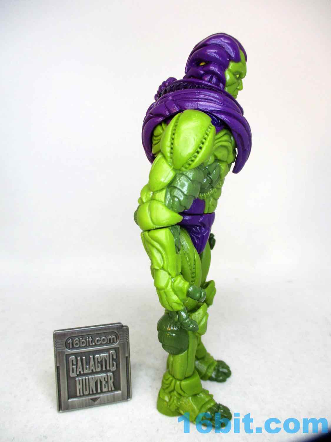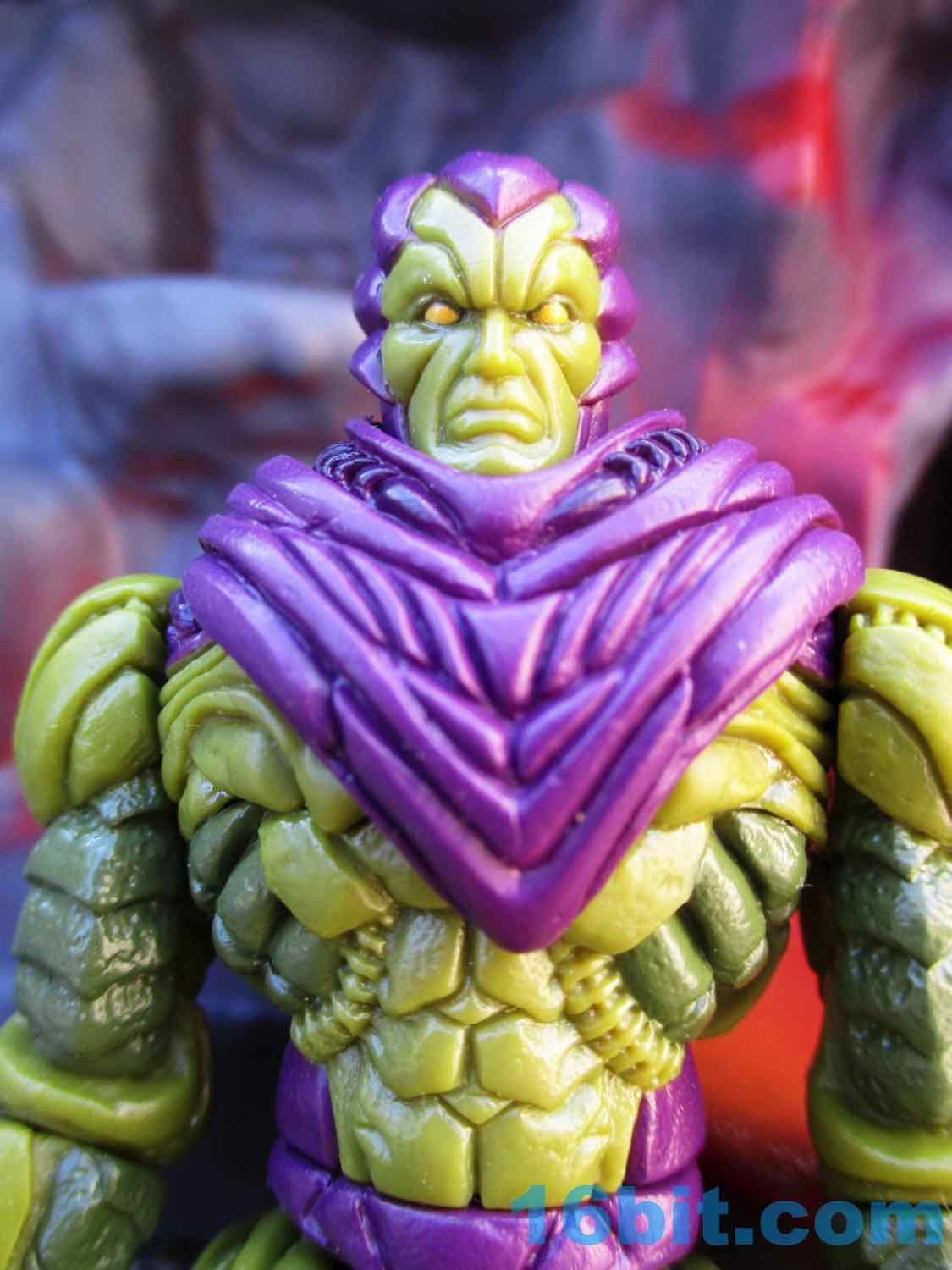 When you get in close to this figure, you can see frankly absurd amounts of tiny details. There are lots of veiny areas with bony breaks that would be at home on a Xenomorph. There's a muscle-like armor over the whole thing. He has claws on his hands and feet, monster muscles, bony kneecaps, and some unusual lines in the back of his shorts. Some of his muscles look like scales, others like coconuts - it's really kind of crazy that so much of this humanoid creature is up to interpretation when you get in really close. The quality of the cuts and the depth of the detail is the kind of thing you see more on Onell Design figures than you would on, say, a typical modern Hasbro release - and I like that.