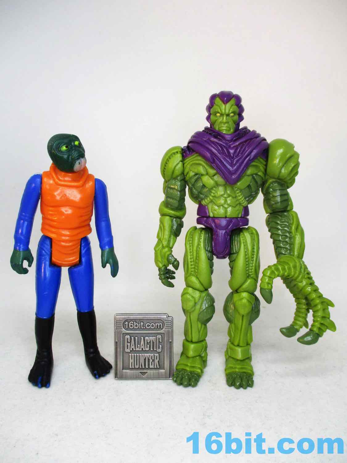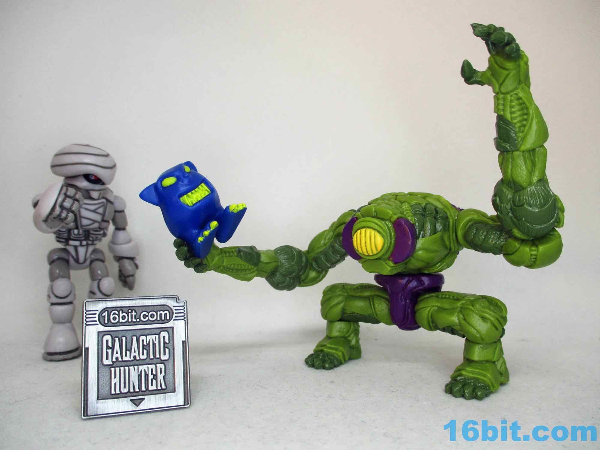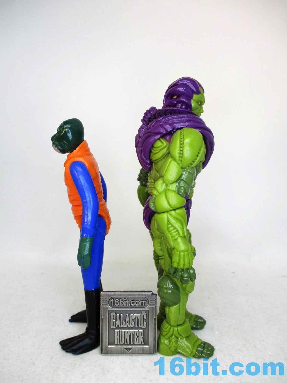 The original promise of Manglors 40 years ago was that you can tear apart and re-assemble various monster figures, including one that looks like The Hulk and Swamp Thing had a baby. It looked sort of like a Play-Doh Stretch Armstrong and the promise of mixing and matching parts resulted in something of an awful mess - but Onell Design went on to invent Glyos in the '00s and pulled off the gimmick well. After 10 years in development, ToyFinity's John Kent, along with Onell Design's Matt Doughty and sculptor Erwin Papa conspired to make a 3 3/4-inch scale (actually 4 1/4-inch) giant that can terrorize your other figures. He's about the same size as the "Kenner" Hulk or Venom, and comparable to the likes of The Outer Space Men Colossus Rex or Cyclops in many respects. If you collect Star Wars, he's on the bigger side of most humanoid figures - tall enough to stand around in the Sail Barge, but too big to fit in a lot of ships.