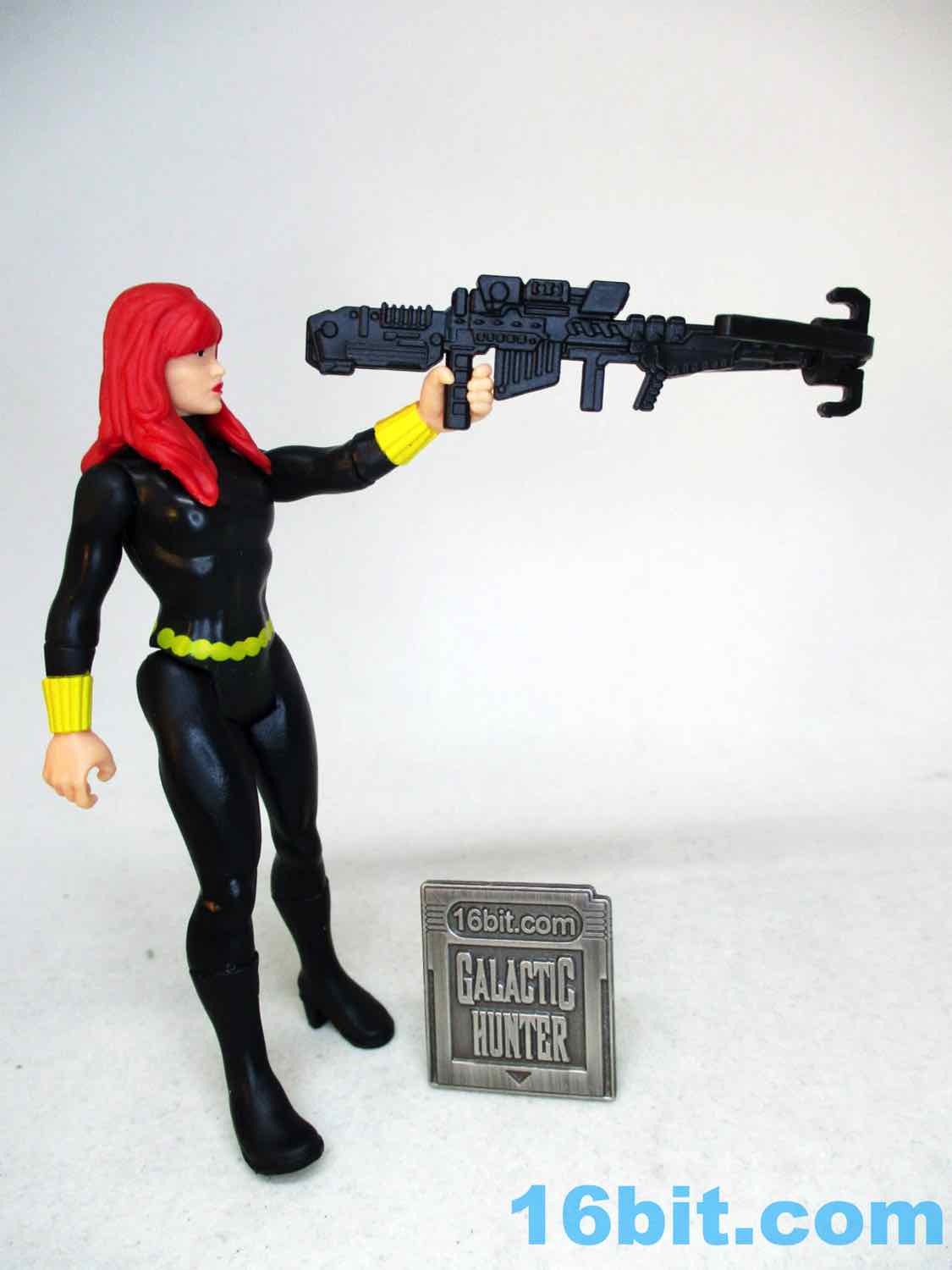 Natasha Romanova continues the tradition of using the only body type women may have in comic books. The skin-tight body suit has been used so many times, it makes sense they'd use it again. Not unlike Snake Eyes of old, she's mostly black plastic - but they did mold arms in color, paint a belt, and mold her a unique head. She his high-heeled boots, which I assume are not great for parkour or running, but it's consistent with her look in the comics. She has her wristbands, and her painted belt looks sort of - but not really - like the series of yellow circles in the comic books. Her packaging art and comic appearances have black gloved hands, but the figure has ungloved flesh hands - why, I have no idea. But Kenner would frequently play with the details due to lack of reference (or concern) - it's still a curious choice, they could probably have saved money on paint by going with the gloves.