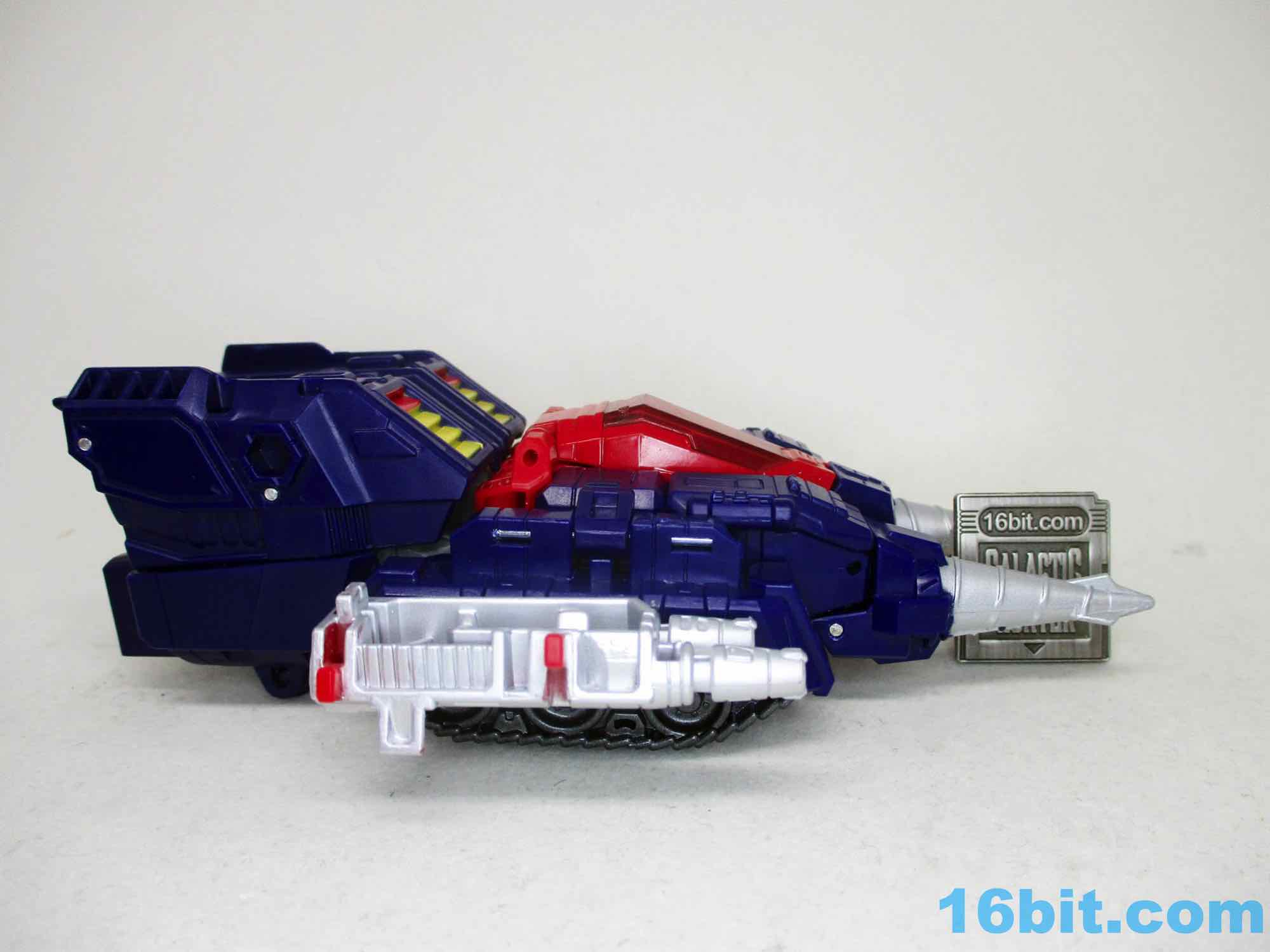 The drill tank mode is that perfect mix of neat and useless. I love the red canopy to sit the mini figure driver in, I love the blasters, the drills are great. The tank treads are a nice touch, but it's worth noting there are four wheels underneath and only one of them kind of rolls. The others are a struggle to move on my sample, which certainly makes you wonder why you want to even bother putting those pieces there. Fake treads and no wheels (and a materials/labor cut) are better than paying for wheels that don't work. It's a fun vehicle design and I love the action figure with vehicle play pattern, as Hasbro and most contemporary toy companies have largely phased it out. You can get figures that turn into vehicles, you can get tiny scale vehicles, but multiple vehicles in an action figure line are scarce. This is part of what makes this drill tank, formerly of the Titans Return line, such a lovely gem. The extra figure with vehicle functionality is a treat, and if you don't have any Titans Return toys, a great reason to buy this one.
