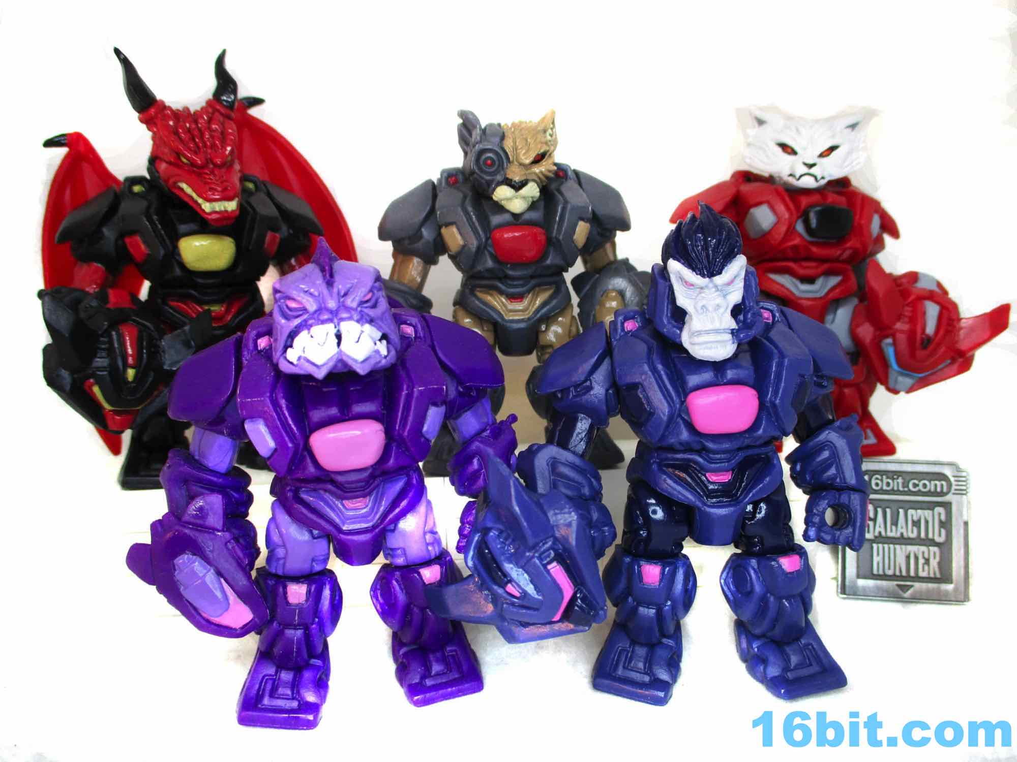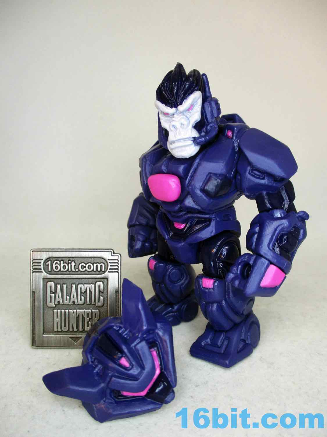 The figure also has the now-retired armored wolf helmet, which can flip around to have a floppy-ear dog head. The vast majority of Armorvor figures include this head, and it looks great here with a pink visor. You can also swap it out with the backpack if you want, but that's just silly. It's a pretty good bag of parts, especially since the gorilla can hold the helmet head and you don't have to worry about finding a bag to store your extra pieces.