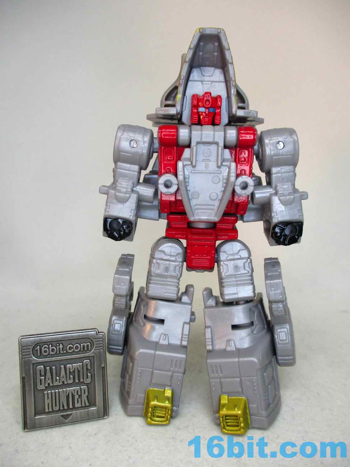 If you're a 3 3/4-inch fan - and if you read this site, I assume you are - this guy will fit in with your space knights and spandex underpants warriors. The very top of his helmet measures up to their skulls, so he can pal around with some of your other toys, if you're into that.