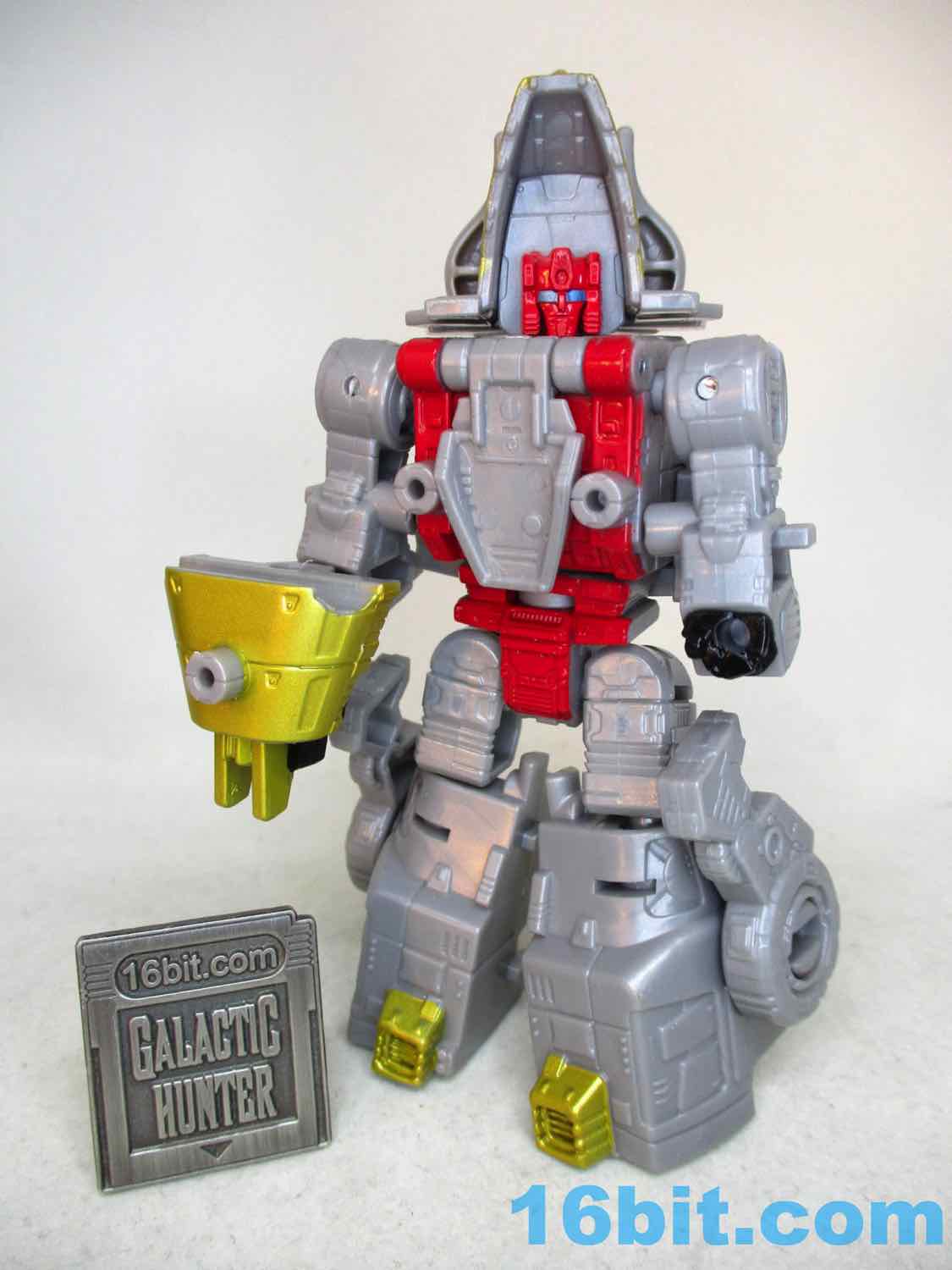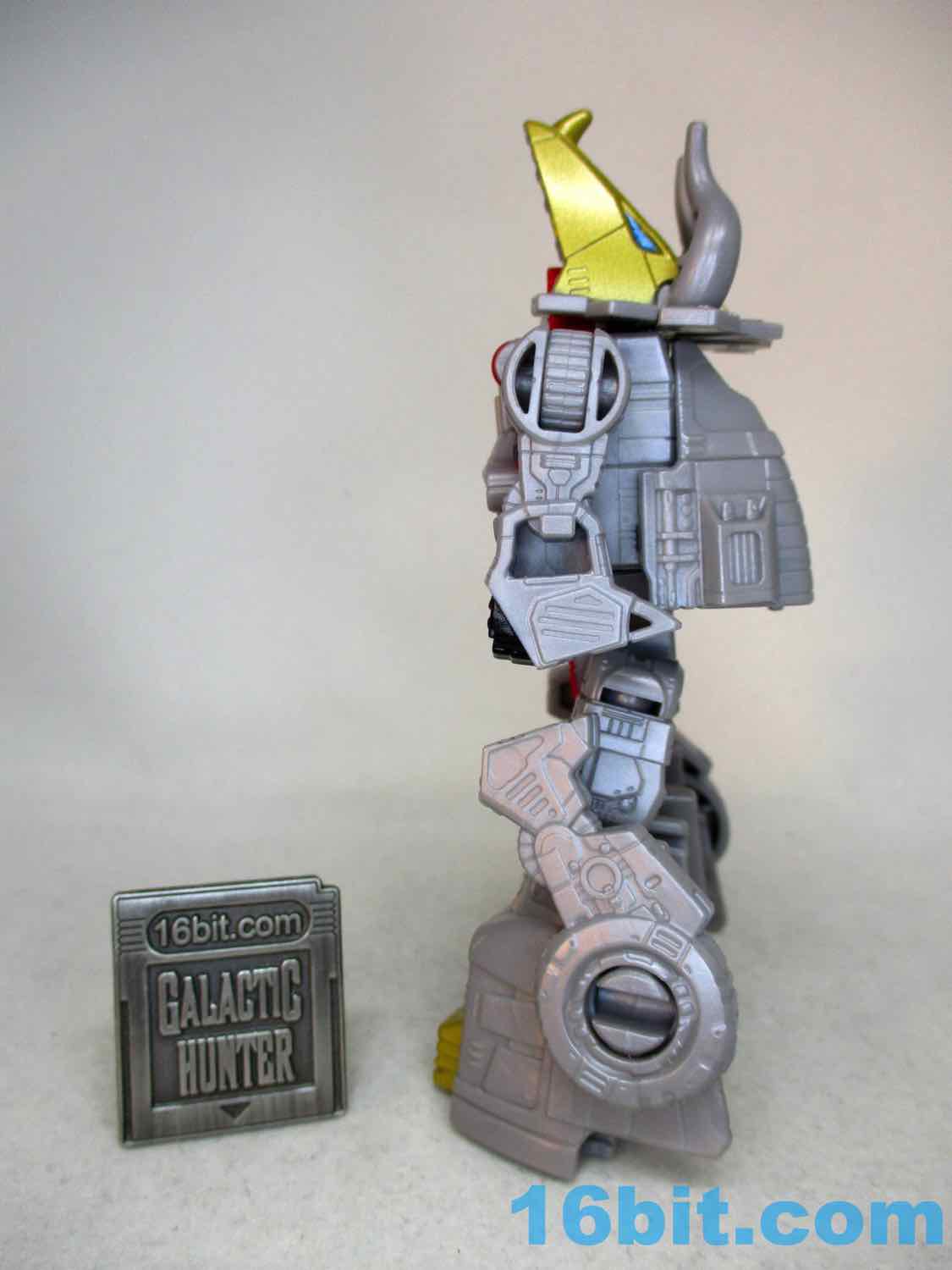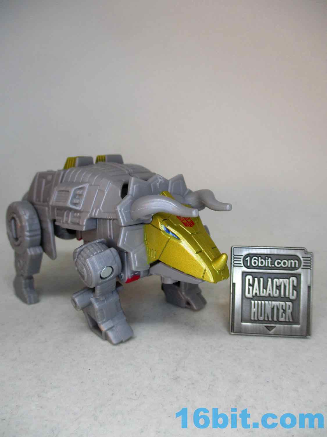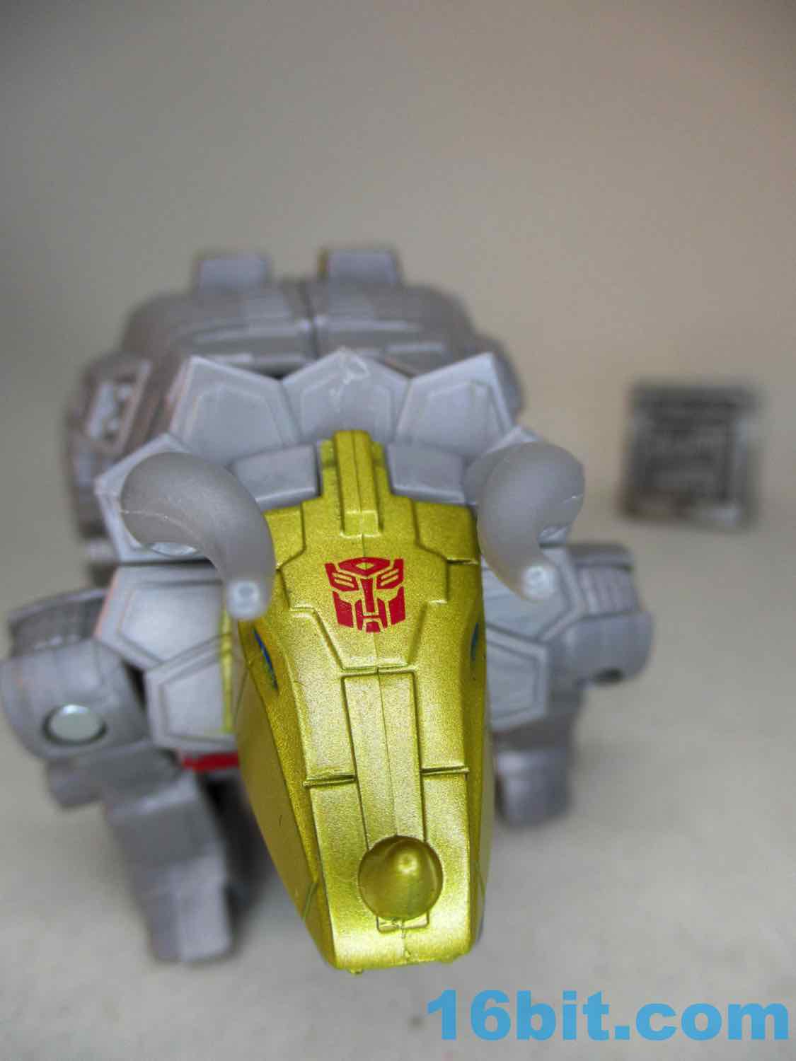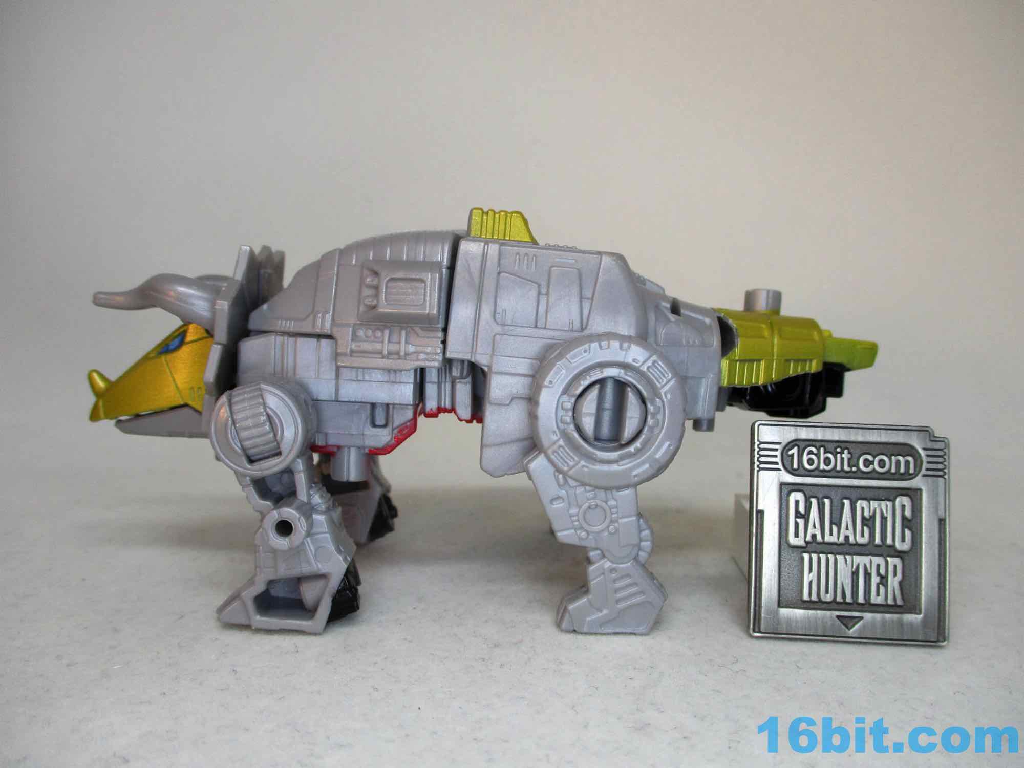 When I got the little Sludge I was thinking "maybe I don't need to finish this set." But Dinobot Slug is pretty good, or at least, is pretty good for the money. The very nice Power of the Primes toy came out about five years ago and was $5 more, but was a Deluxe toy with a blaster. And a hand piece. It was great! For those who have that and got it for retail price, this new little guy will undoubtedly be disappointing - but for a small combiner chest, I like it. The robot mode is fine. The triceratops mode isn't too compromised. The upper torso is fine. At $10 I'd tell you to get it and don't complain, but at $12 we're creeping into an arena where you and I and everybody else will be going "So when can you guys start designing the best toys for those classic price points again?"