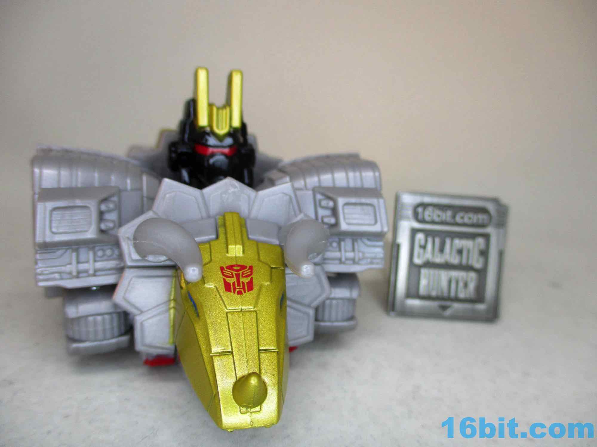 As the head of Volcanicus, he's pretty good. The triceratops head looks nice as a chest, and Volcanicus' head looks like the last one - which is to say, Grimlock with a couple of crown horns. It's silly, but thematically fine. You'll probably dig it when he has arms and legs at some point later this year. If you are planning to collect all six, I'd say go buy this one. It's a stretch to say it's half as good as most $25 deluxe toys, but it's cute and the colors are more or less what you might expect. I question the value of a $72 Combiner that will be, at best, the size of a Voyager but I also bought the then-pricey Micromasters Combiners that Kay-Bee sold for $4 per figure for 6 figures, and at the time those seemed expensive relative to the $7 Mini-Con three-packs. All things considered it's a pretty interesting toy, and comparable to a retro 3 3/4-inch Hasbro figure in that it does more for about the same price.
