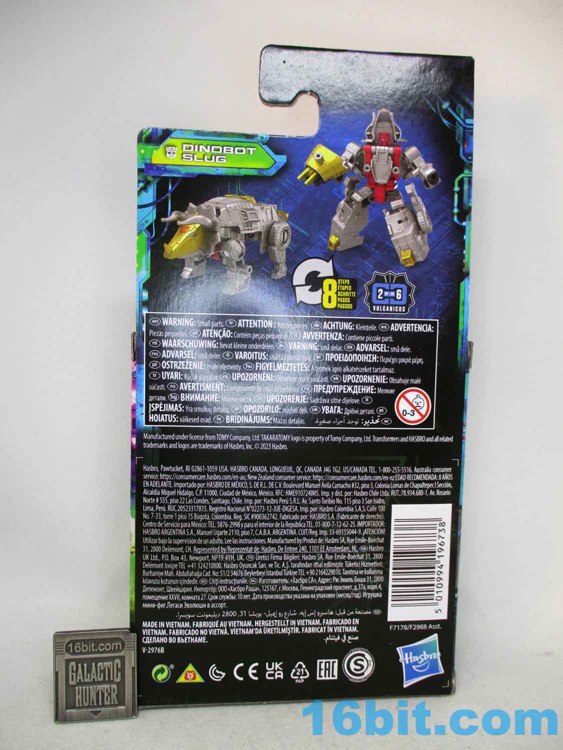 Item No.: Asst. F2988 No. F7178 Manufacturer:Hasbro Includes:Tail blaster with hidden Volcanicus head up his butt Action Feature:Transforms from robot to triceratops Retail:$11.99 Availability: December 2022 Other: Better than Sludge