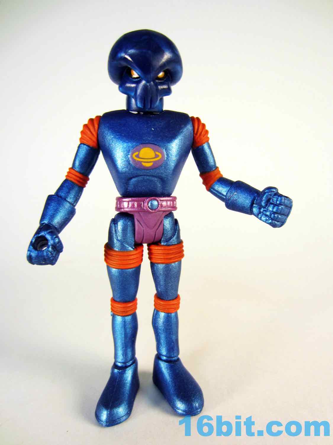 Since this blue figure was part of the Task Force Volkriun wave - green, with green - the plastic didn't match anybody else in the wave. If memory serves nobody else was running these colors except The Outer Space Men, and it closely matches the blue plastic which was painted for Outer Space Men 2.0 Xodiac [FOTD #711] released at about the same time.