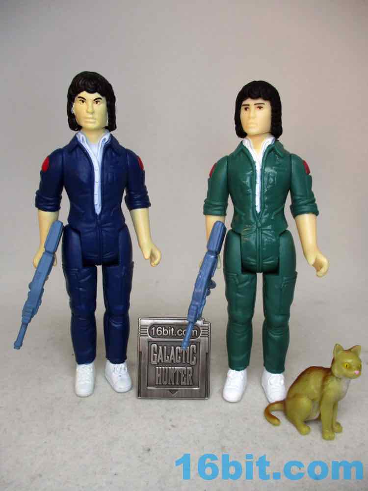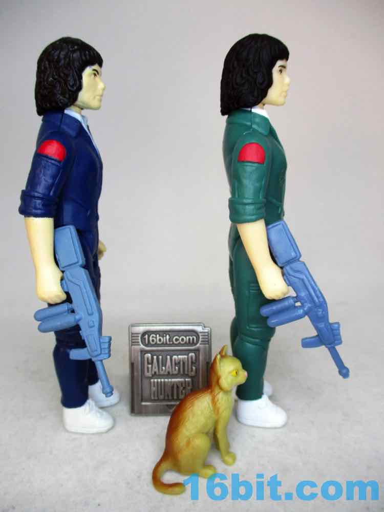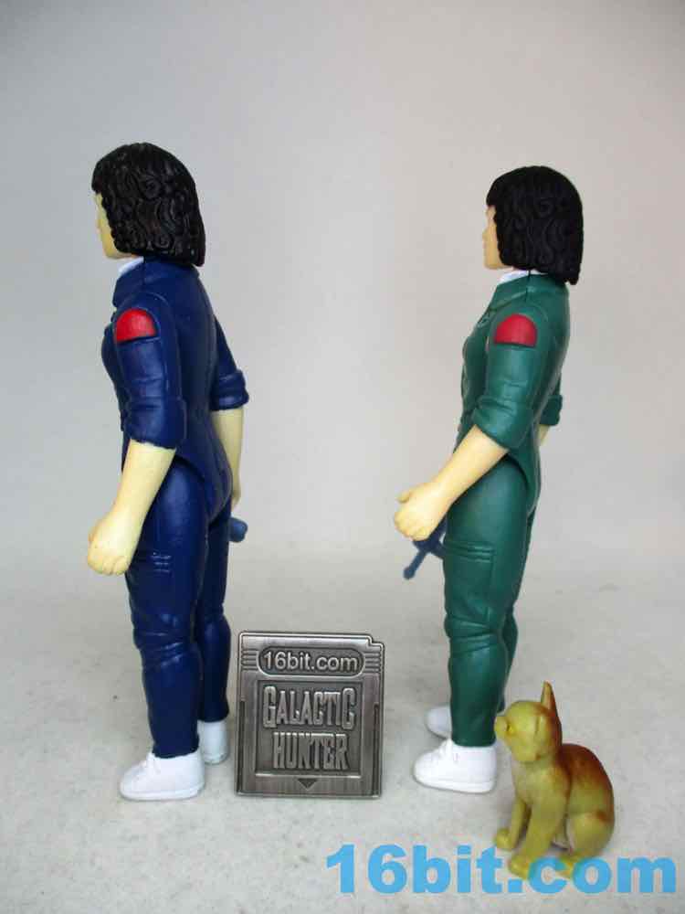 The 3 3/4-inch scale Ripley with Jonesy is also basically the Funko mold with new copyrights. I can point to a lot of improvements here - her skin is now molded in color, so it's not the thick, powdery fleshy paint. The eyes and eyebrows look a little more lively this time. Her suit is green instead of blue - a little saturated compared to the movie, but arguably better than the blue suit of the original. What really struck me is that her flamethrower is now molded in blue rather than painted, and even though it's not that "Kenner blue" it still looks great. She has shoulder patches painted on her arms and nice white sneakers. I really believe this is closer to what Kenner would have released had the figure seen production in 1979.