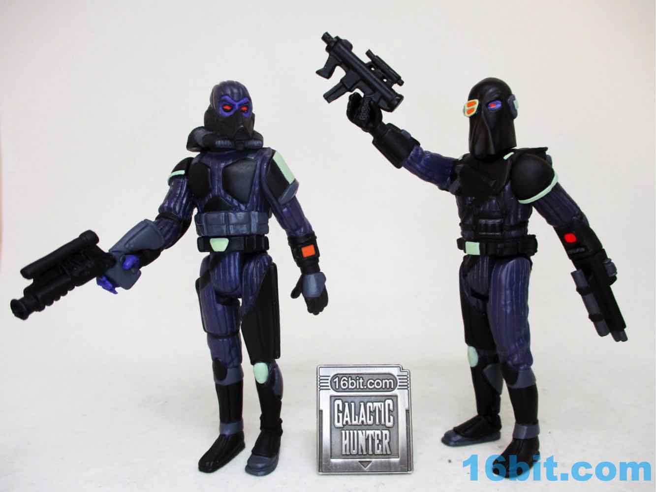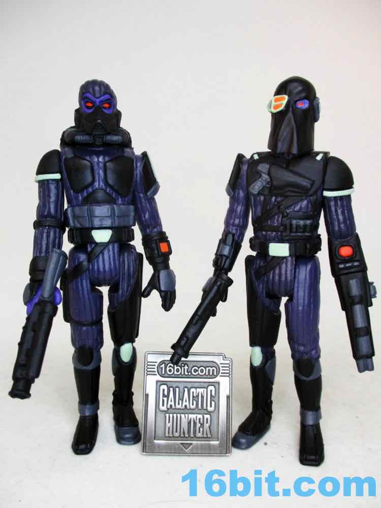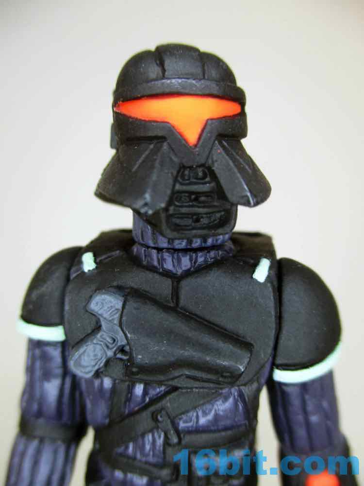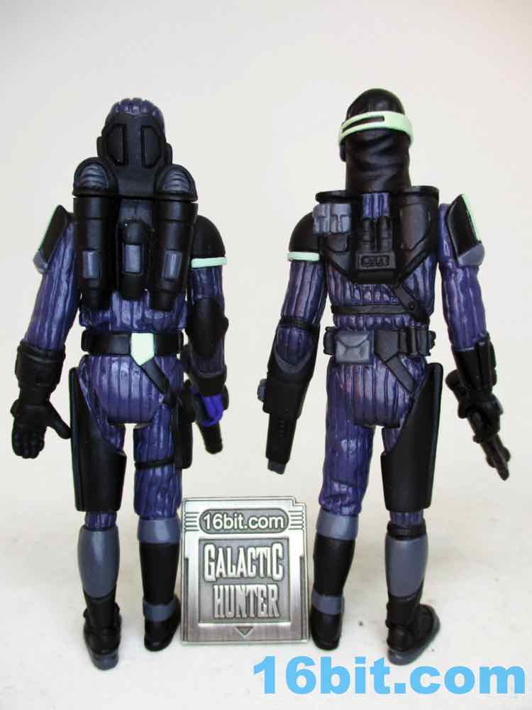 Of the two figures to date, this is the better Trooper. There's nothing wrong with applying Boba Fett's paint job to a figure, but this is so much weirder - I like it a bunch. The darker plastic seems to show the sculpted ribbing just as well, if not better, and the pistol holster in the chest is a bit more subtle.