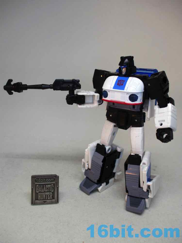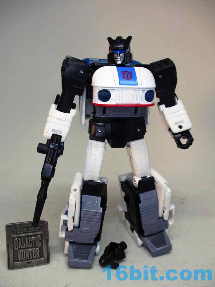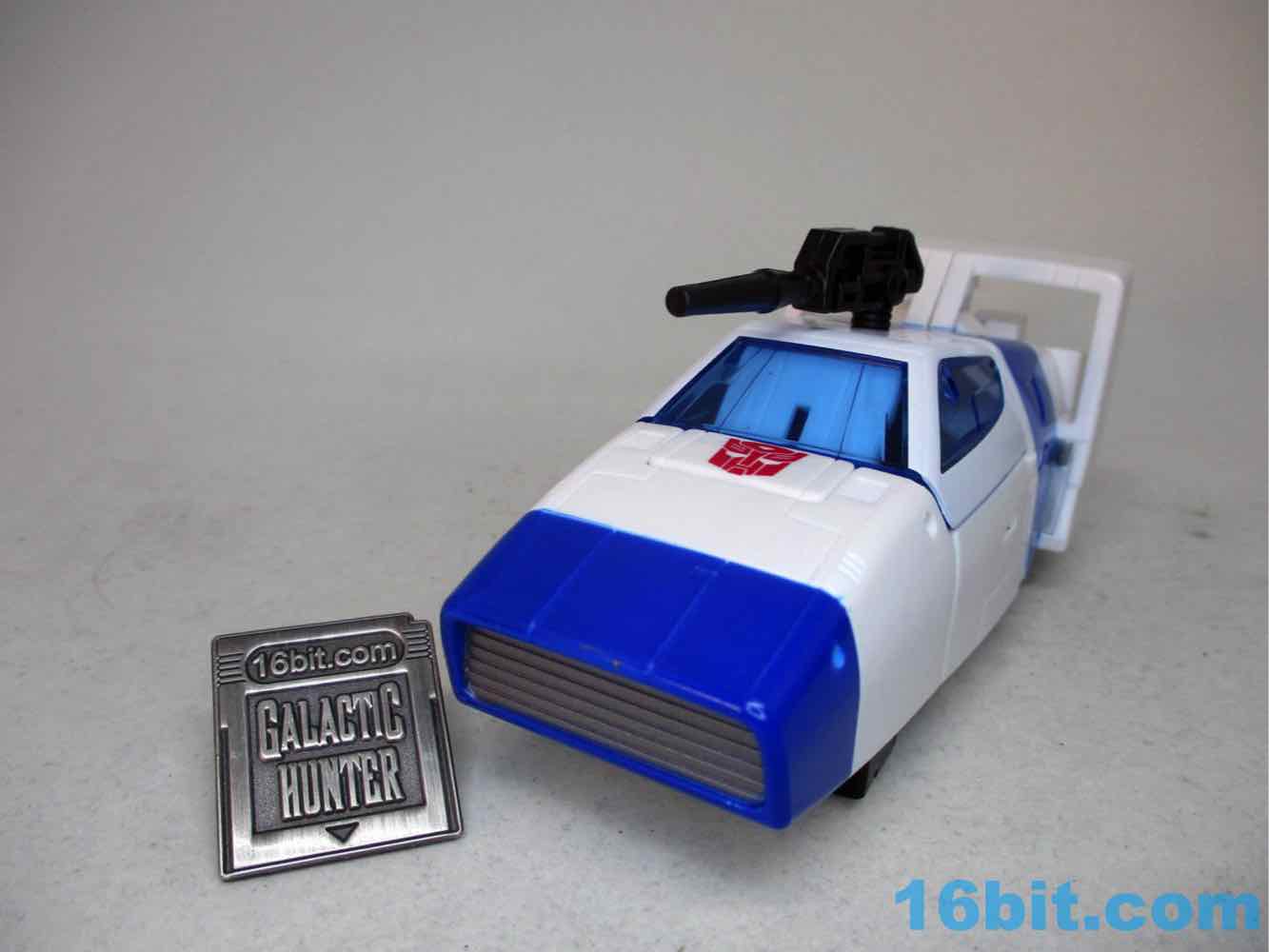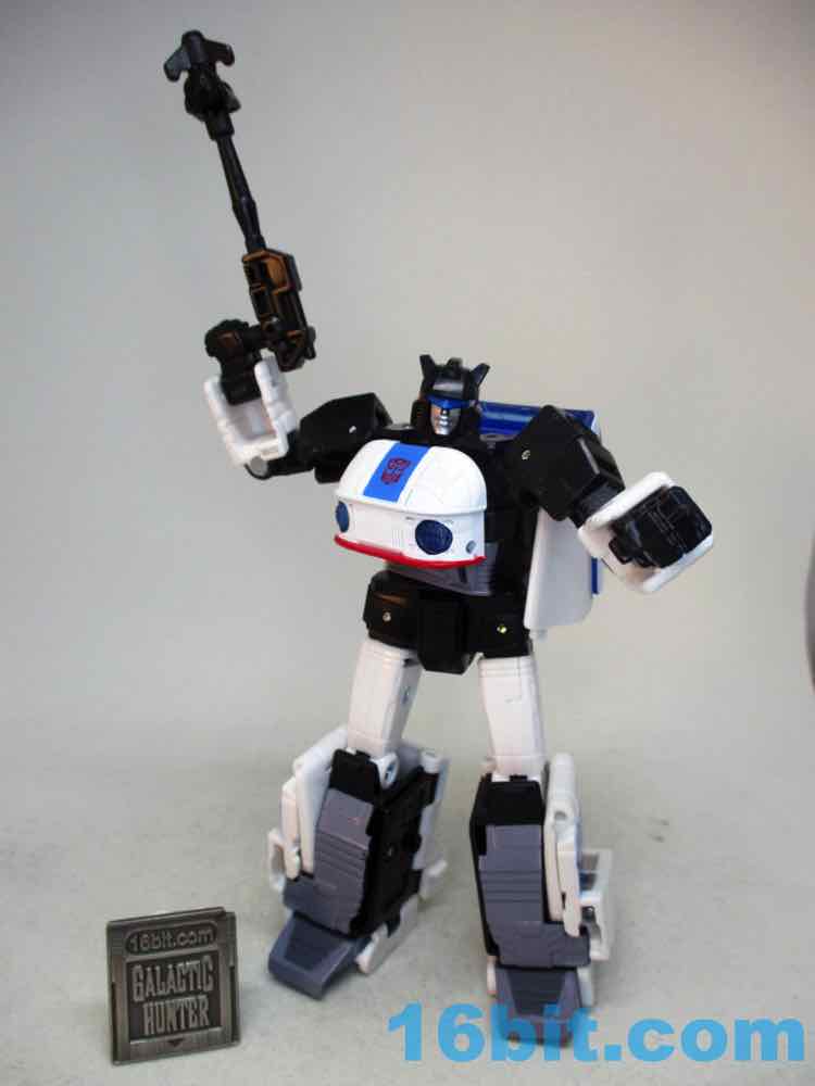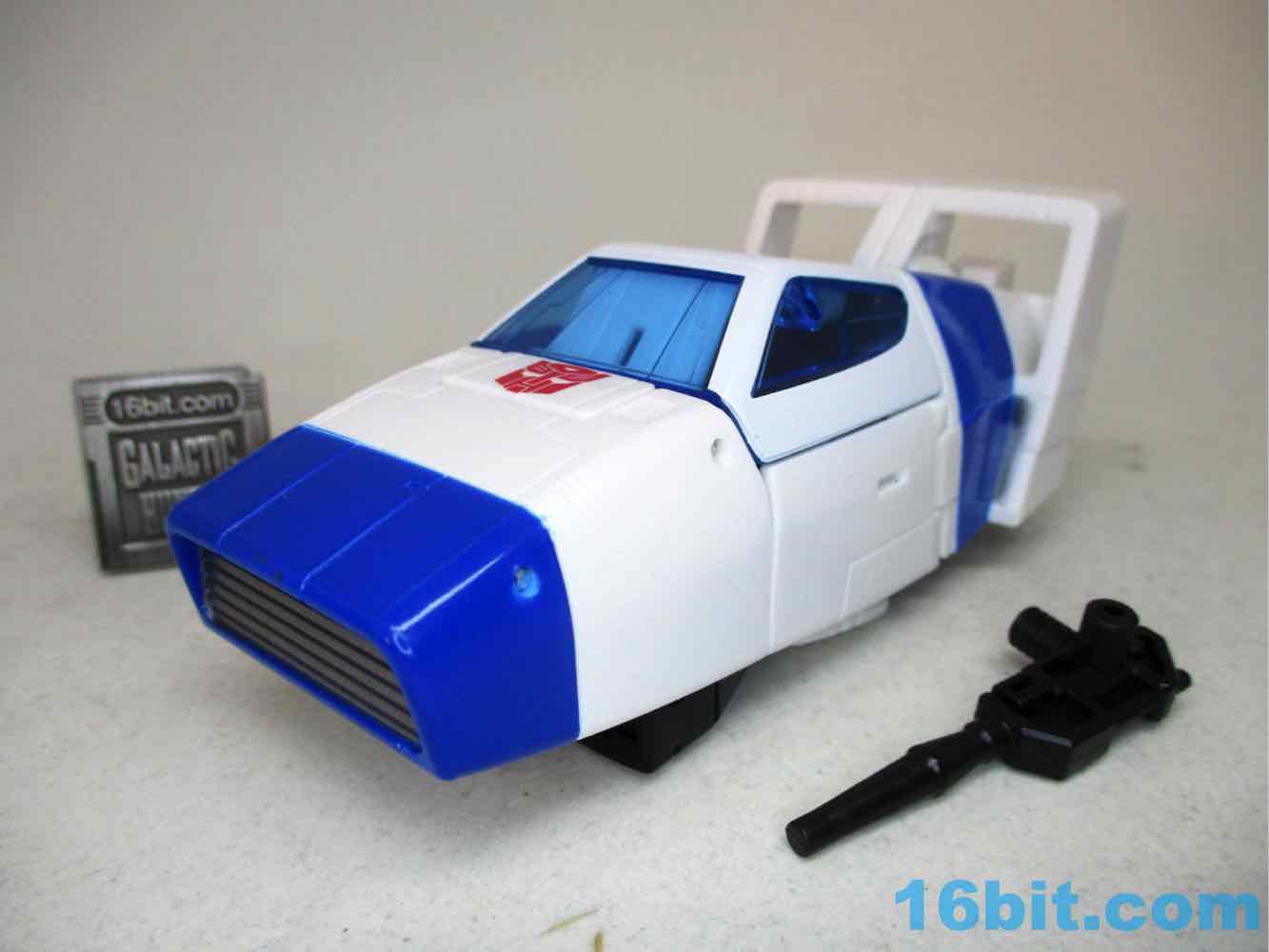 As of early April he's still rolling out (and online pre-orders weren't filled - I canceled mine to pluck it off the shelf.) $25 is kind of expensive for a deluxe toy, but there are a lot of parts here and Hasbro came up with a good exclusive that's appealing to old, jaded collectors who probably cringe every time a new figure from the 1984 era comes back. This gives you a reason to actually want to buy another Jazz toy, and that's enough for me. And I mean it - with this one, I may never buy another Jazz toy. They nailed it, it's time to move on to whatever is next. (Wheeljack, I hope.)